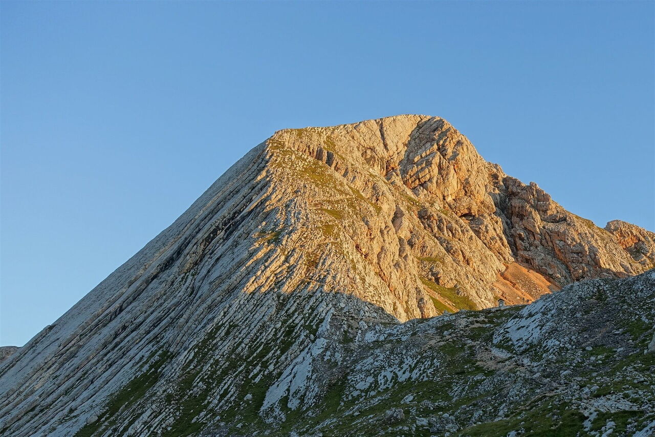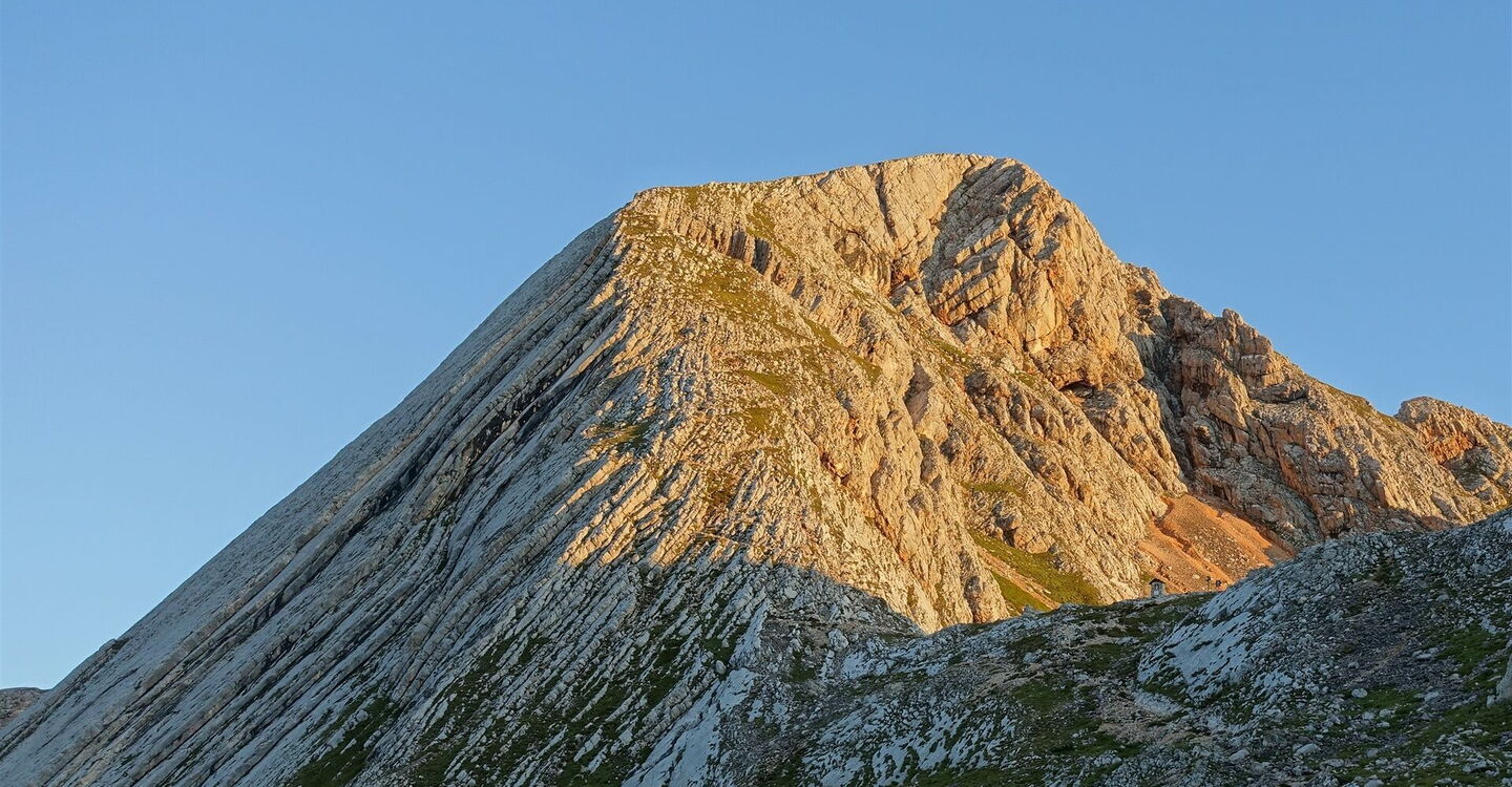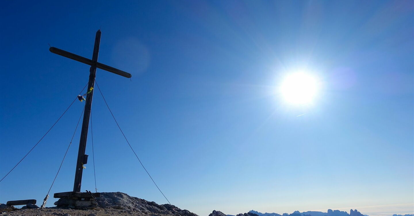 Der nachfolgende Pfad über die Karstfläche des nun breiten Gipfelrückens führt bis zum Gipfel des 05 Seekofels (2.810 m). Wir gehen auf dem bekannten Hinweg zurück.