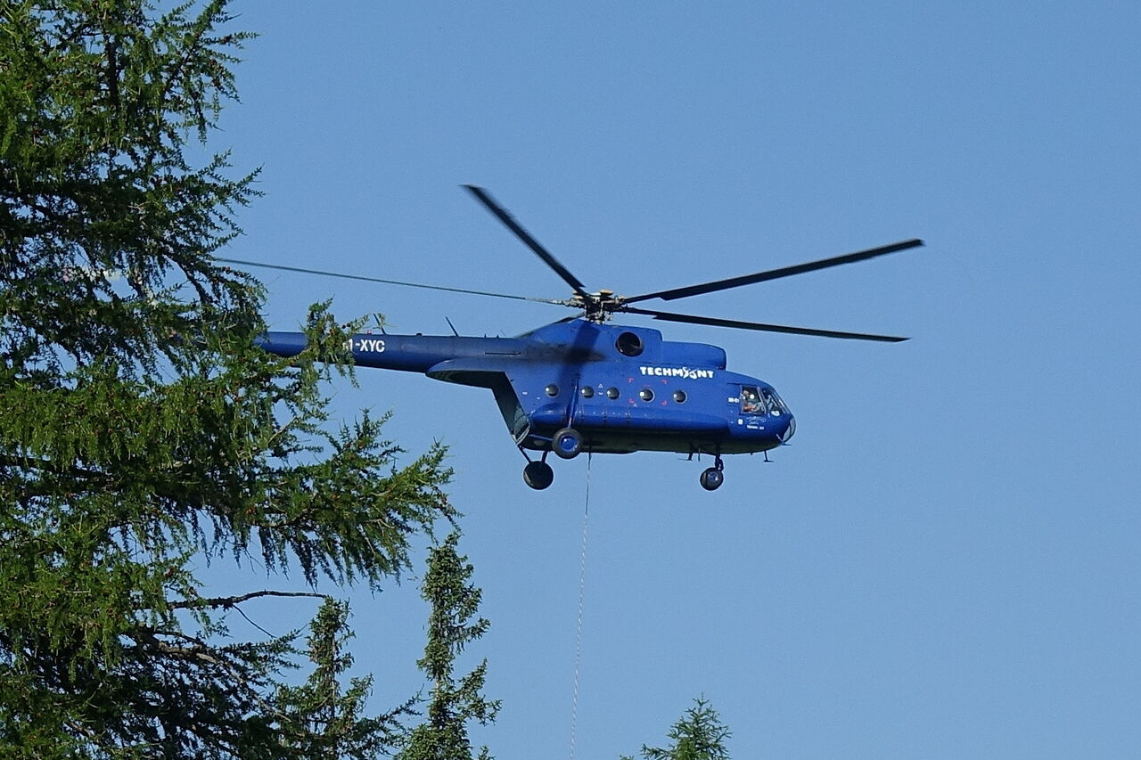 An der Bergstation 02 Hrebienok (1258 m) der Standseilbahn gehen wir in westlicher Richtung an dem Restaurant und dem 4-stöckigen Turm vorbei, um dann auf Höhe eines Hauses auf den halb rechts abzweigenden Pfad zu gelangen, den roten Wanderweg der Tatranská Magistrála. Ohne signifikant an Höhe zu gewinnen – es geht sogar ein kleines Stück bergab –, quert der Pfad zunächst die südlichen Hänge des Slavkovský štít. Bei der nachfolgenden Weggabelung, mit zahlreichen Wegmarkierungen gehen wir scharf rechts. Etwas ernüchternd sind die ausgeschilderten 4 Stunden und 15 Minuten Anstieg bis zum Gipfel – ist es wirklich so lang?