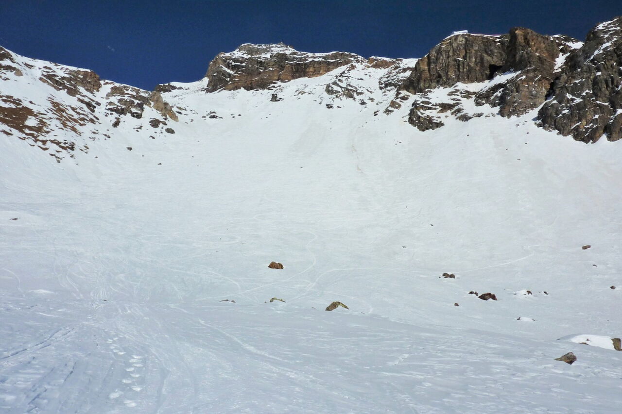 Der Einstieg in die Scharte und auch in den Canyon erfordert eine gute Orientierung, am besten mithilfe des GPS-Tracks. Die Abfahrt führt über einen Westhang. Folgende Ausrüstung wird empfohlen: Produkte für alpine Sicherheit im Schnee, Freerideski und Skitourenhelm. Es gibt verschiedene Restaurants zur Einkehr im Skigebiet. Beste Jahreszeit: Januar bis April. Uns erwarten kurze Stücke mit bis zu 40° Hangneigung.