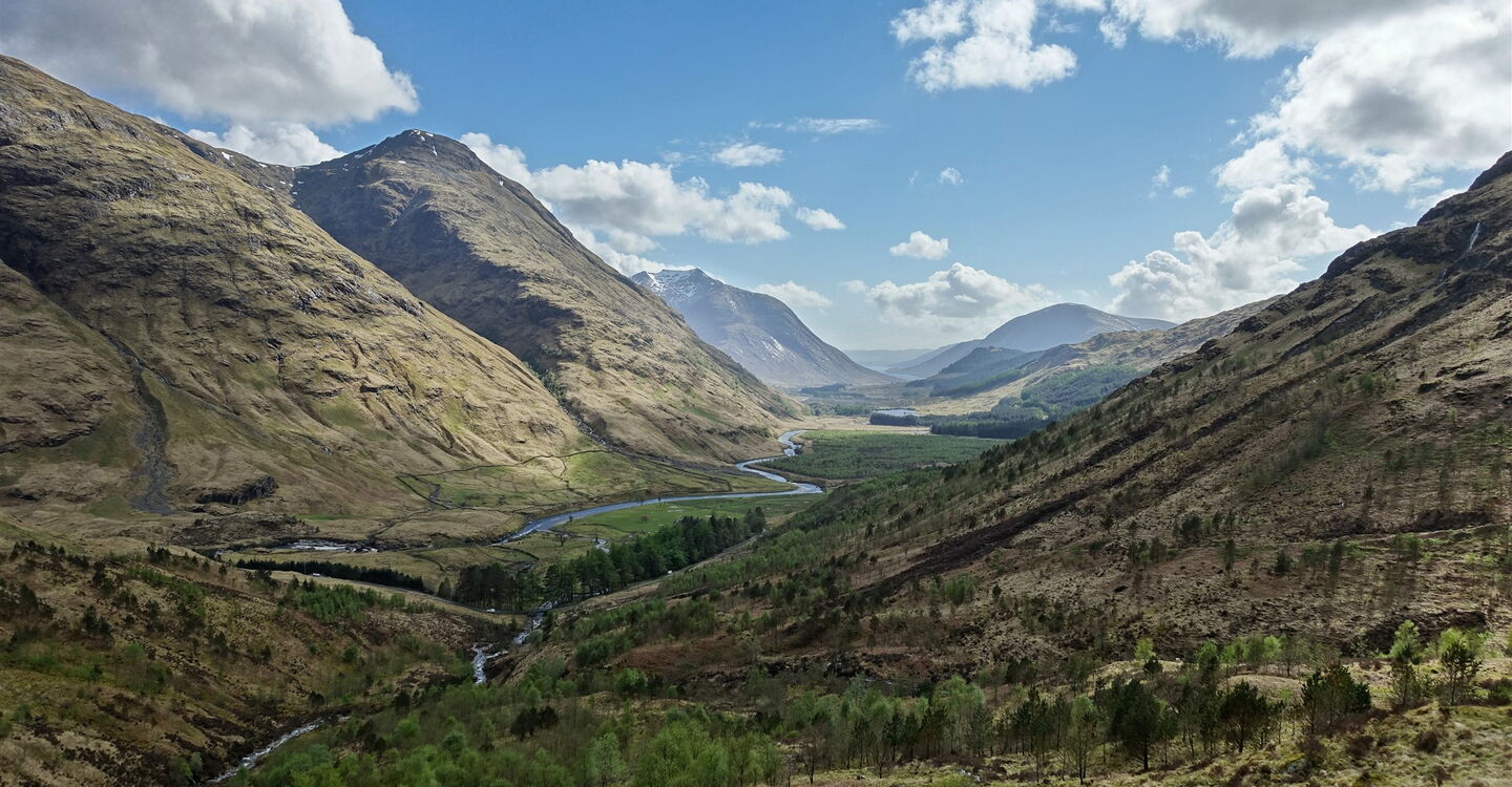 Der Buachaille Etive Beag ist ein 5 km langes Bergmassiv in den westlichen Highlands, südlich von Fort William. Die beiden Gipfel Stob Dubh und Stob Coire Raineach zählen zu den 282 Munros. Die Überschreitung des höchsten Gipfels – dem 958 m hohen Stob Dubh – über den südwestlich ausgerichteten Bergrücken ist eine selten begangene Route. Schon die Anfahrt zum Ausgangspunkt der Wanderung durch traumhaft schöne Landschaften entlang des malerischen Flusses Etive ist ein Vergnügen der Extraklasse.