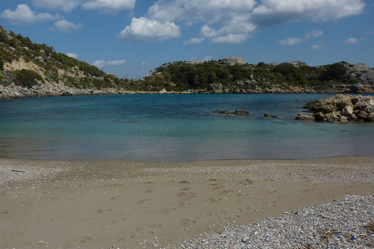 4 km südlich von Faliraki befindet sich der wunderschöne Strand von Ladiko, gelegen in einer beeindruckenden Bucht. Ein sehr lohnender wildromantischer und unberührter Panoramapfad führt von dort zu den Ruinen einer antiken Festung. Während der Wanderung treffen wir auf eine offene Höhle, wo sich ein unvergesslicher Blick wie durch ein Fenster auf das tiefblaue Meer ergibt. Nach der Wanderung wartet als Belohnung eine der schönsten Buchten im Norden von Rhodos, die Anthony-Quinn-Bucht, auf ein entspanntes Sonnenbad.