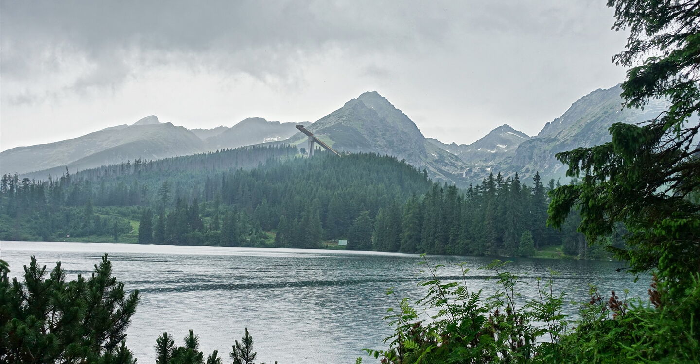 Während wir an der Südseite des Sees spazieren, haben wir einen besonders schönen 04 Ausblick (1346 m) auf die nördlich gelegenen Berge der Hohen Tatra.