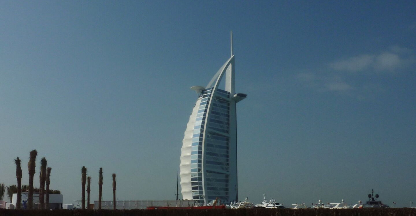 Das Burj al Arab ist das bekannteste Wahrzeichen Dubais. Mit seinen 202 Suiten und 312 m Höhe ist es eines der luxuriösesten Hotels der Welt und das einzige Hotel mit „inoffiziell“ sieben Sternen.