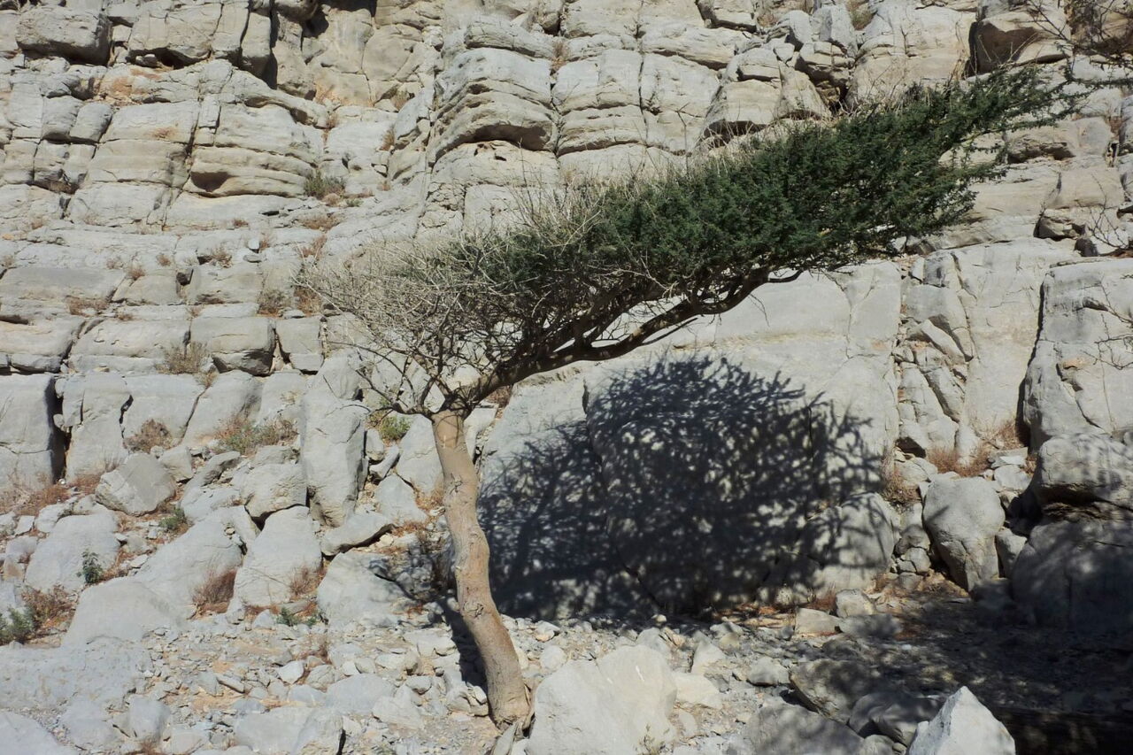 Wir treffen auf Akazien, die vom Wind geformt worden sind.