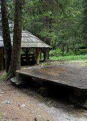 Wir überqueren das erste Mal den 03 Fluss Biela Voda (1045 m) und erreichen einen großen freien Platz mit einem überdachten Picknickplatz.
