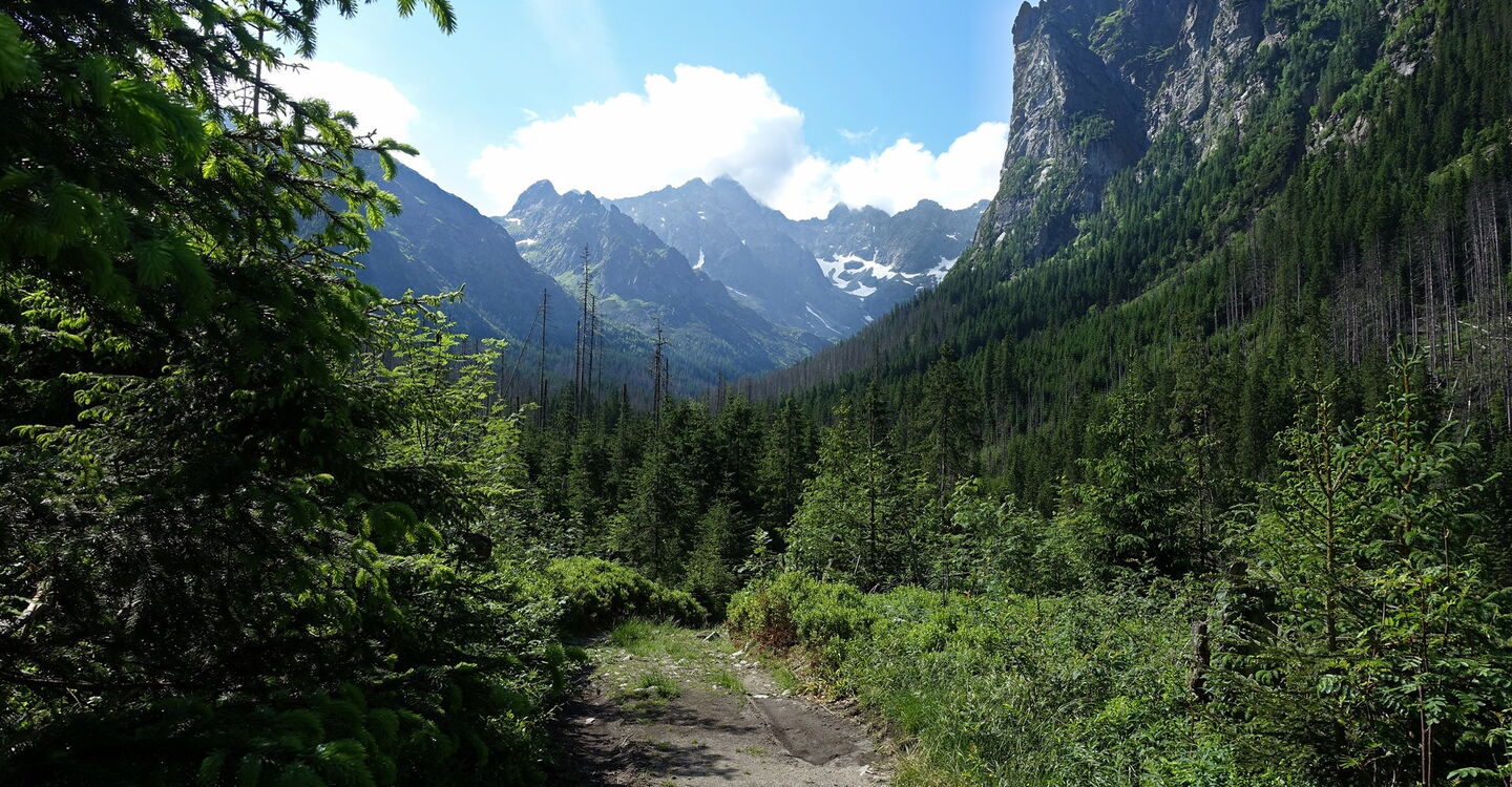 Nachdem wir die Nacht im komfortablen Hotel Montfort verbracht und ein fürstliches Frühstück genossen haben, können wir den Tag gemütlich angehen, da wir auf der heutigen Tagesetappe nur 12 km und wenige Höhenmeter zu bewältigen haben. Entlang der polnischen Grenze wandern wir durch das längste Tal der Hohen Tatra, das 10 km lange Bielovodská Dolina. Wir lauschen den ständigen Wassergeräuschen des Biała Woda – dem Weißwasserfluss – und wandern tiefer in die entlegene Bergwelt bis zu einem faszinierenden Hochtal. Blickt man Richtung Talschluss, erheben sich dort am Hauptkamm der Hohen Tatra Größen wie der 2429 m hohe Východná Vysoká, der 2654 m hohe Gerlachovský štít oder der 2503 m hohe Rysy. Leichte Wanderung – Zeit für Gefühle.