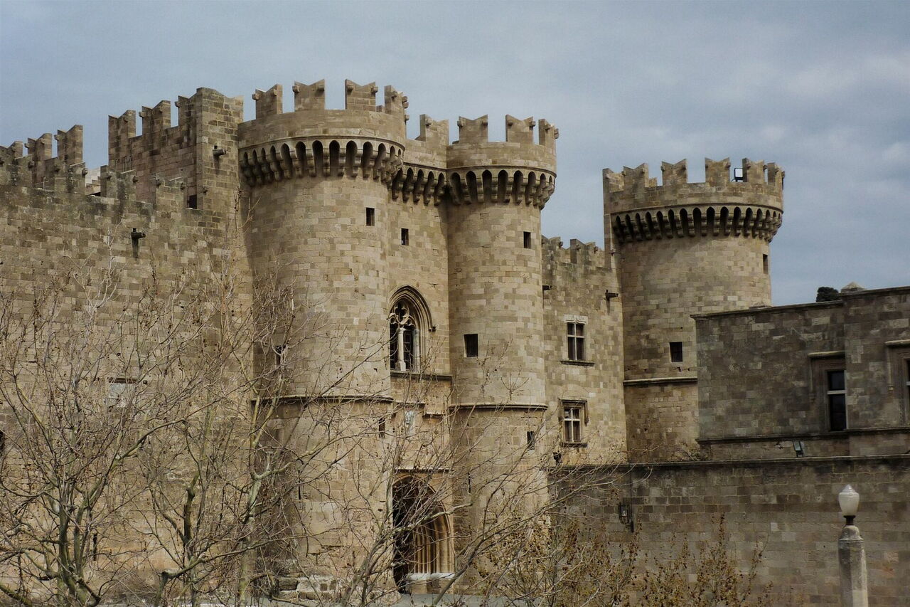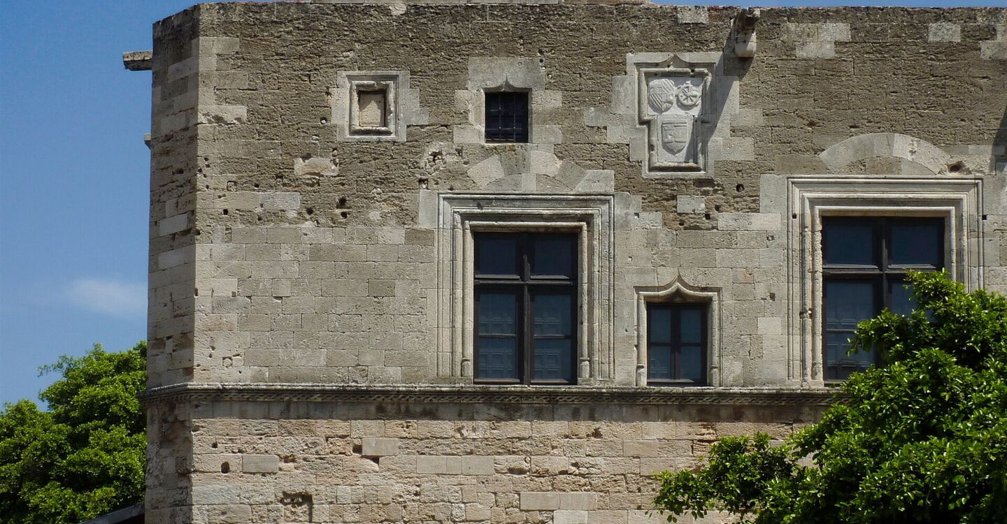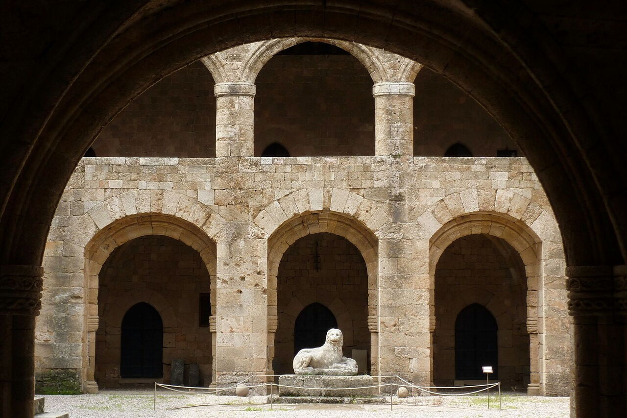 Wir setzen unseren Weg parallel zur Stadtmauer fort, gehen durch das Arnaldotor, und bevor wir den historischen Stadtkern ganz verlassen, gehen wir links direkt auf das (03) Archäologische Museum (4 m) zu, das ehemalige Ordenshospital der Johanniterritter. Es wird auch das Krankenhaus der Könige genannt und wurde in der Zeit von 1440-1484 errichtet – eines der herausragenden Gebäude der Ritterzeit. Seit 1916 dient es als Museum und es werden Exponate aus der postklassischen, hellenistischen, römischen und Ritterzeit gezeigt. Vor dem Gebäude gehen wir rechts und dann sofort links in die äußerst beeindruckende gepflasterte Ritterstraße – Griechenlands einzige vollständig erhaltene Wohnstraße aus dem 16. Jahrhundert.