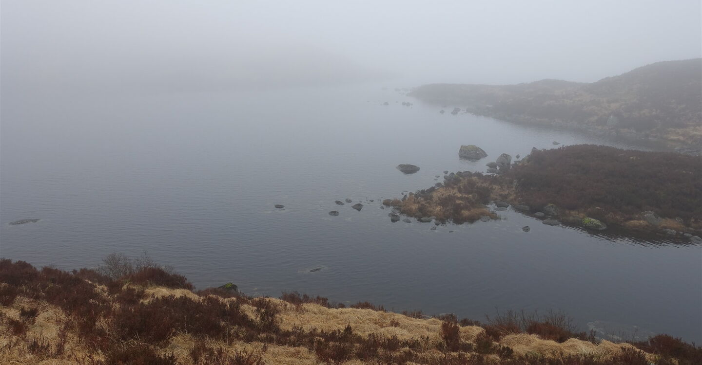 Am nordwestlichen Ufer des Lochs ist der weiterführende Pfad nur schwer auszumachen, hier gehen wir parallel zu einer Steinmauer – diese queren wir im weiteren Verlauf – und einem weiteren Bachlauf. Während wir weiter aufsteigen, passieren wir den 150 m entfernt liegenden Loch Arron an seinem westlichen Ufer. Zwei aufeinanderfolgende Hochebenen queren wir und wandern weiterhin geradeaus. Rechts unterhalb sehen wir nun den 04 Enoch Loch (492 m) – ein unberührter, wunderschöner See. Ein Drahtzaun schlängelt sich bis zur Uferkante des Sees herunter. Wir gehen zwischen dem Zaun und dem kleinen Strandabschnitt am Ufer entlang, um dahinter auf einem gerölligen Pfad parallel zum See aufzusteigen.