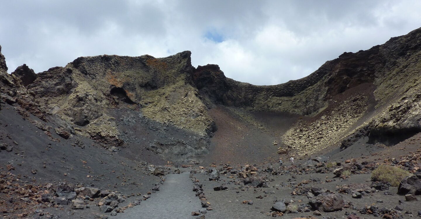 Dieser Rundwanderweg ist ein absolutes Muss für jeden Lanzarote-Urlauber. Wo hat man schon die Möglichkeit, auf einem bequemen Weg direkt in den Schlund eines Vulkankraters zu laufen? Der zentrale Krater der Caldera de Los Cuervos brach am 1. September 1730 aus. Danach bebte die Erde für weitere sechs Jahre. Am Ende waren es die größten Vulkanausbrüche der Geschichte der Kanarischen Inseln. Spektakulär aufgeschichtete Fragmente aus Lavagestein warten darauf, entdeckt zu werden. Bitte verlassen Sie auf keinen Fall die ausgezeichneten Wege - ein Fußtritt zerstört ca. 3 Jahre Evolution. Unter den Steinen befinden sich Samen, die bei Regen zum Leben erweckt werden.