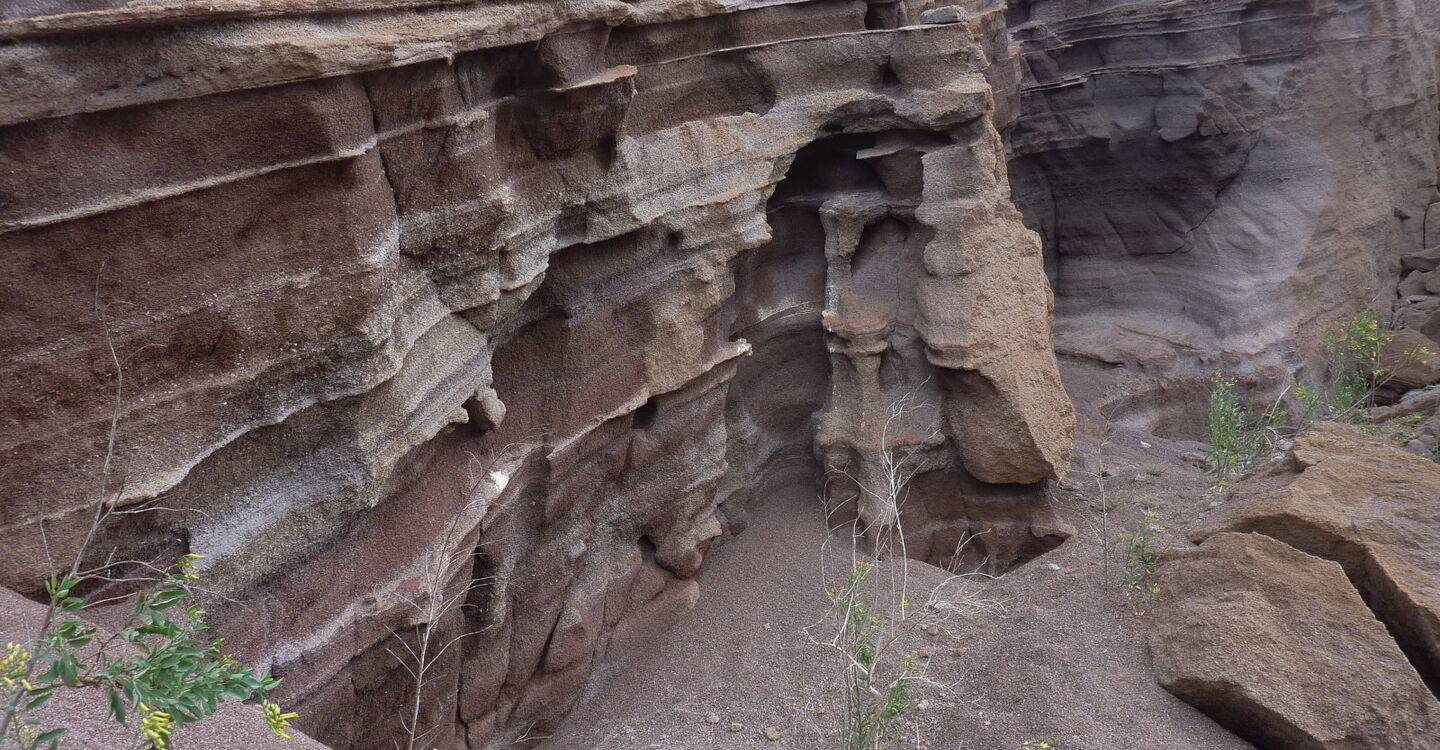Nach einer Anhöhe können wir in der Ferne das Piratendorf (03) Tenesar (8 m) sehen. Oberhalb der steilen Klippe führt der Pfad bis in ein Barranco, dem wir rechts für 170 m in Richtung Küste folgen. Anschließend gehen wir direkt auf die weißen Häuser von Tenesar zu. Bei einer gepflegten Brotzeit kann man beobachten, wie Riesenwellen mit ihrer enormen Gewalt an der Küste brechen. Am östlichen Rand des Dorfes liegt noch versteckt die nicht ganz saubere Playa Tenesar, die man je nach Stand der Gezeiten über einen Pfad unterhalb der Klippe erreichen kann.