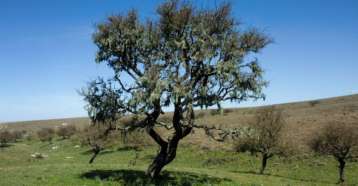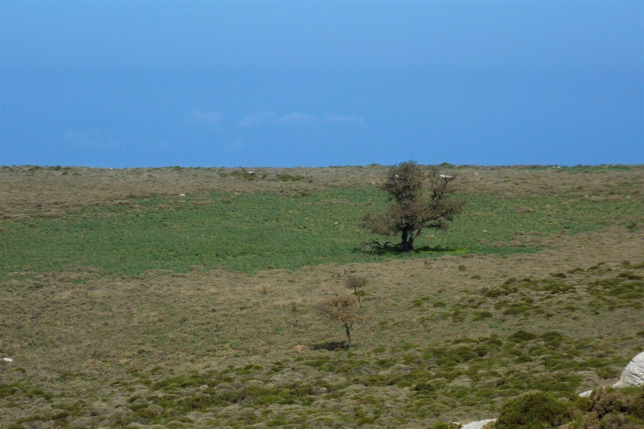 Schlussendlich verliert sich das Bachbett, wir gehen noch in Richtung einzeln stehender Bäume und übersteigen den vor uns liegenden Bergrücken. Nach einem kurzen Abstieg erreichen wir eine Hochebene, in deren Mulde sich ein (03) kleiner Wald (950 m) befindet. In östliche Richtung folgen wir einem Ziegenpfad und erreichen eine weitere kleine Hochebene. Wenn das Wetter es erlaubt, ist dies ein idealer Picknickplatz.
