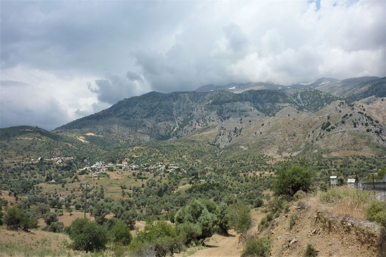 Wir gehen 850 m auf der Asphaltstraße und verlassen diese in der Rechtskehre auf den halb links beginnenden Schotterpfad. Bei guter Sicht haben wir von dieser Position einen atemberaubenden Blick auf den Psiloritis. Auf der anderen Talseite sieht man unser heutiges Tagesziel, die Ortschaft Kouroutes. Beim Dorfplatz mit den Informationstafeln gehen wir links auf der Straße noch durch die nachfolgende Kehre, biegen dann die zweite Straße links ab, anschließend sofort wieder rechts und erreichen nach 80 m die Unterkunft 05 Χenonas Kourites (535 m).