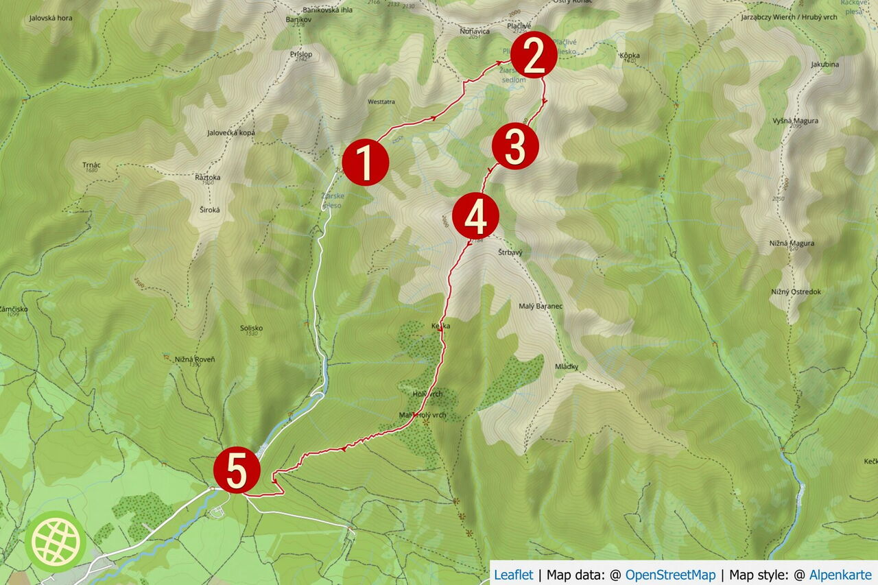 Start: Žiarska-Berghütte (siehe Wanderung 30). GPS: 49.181150 19.719950.