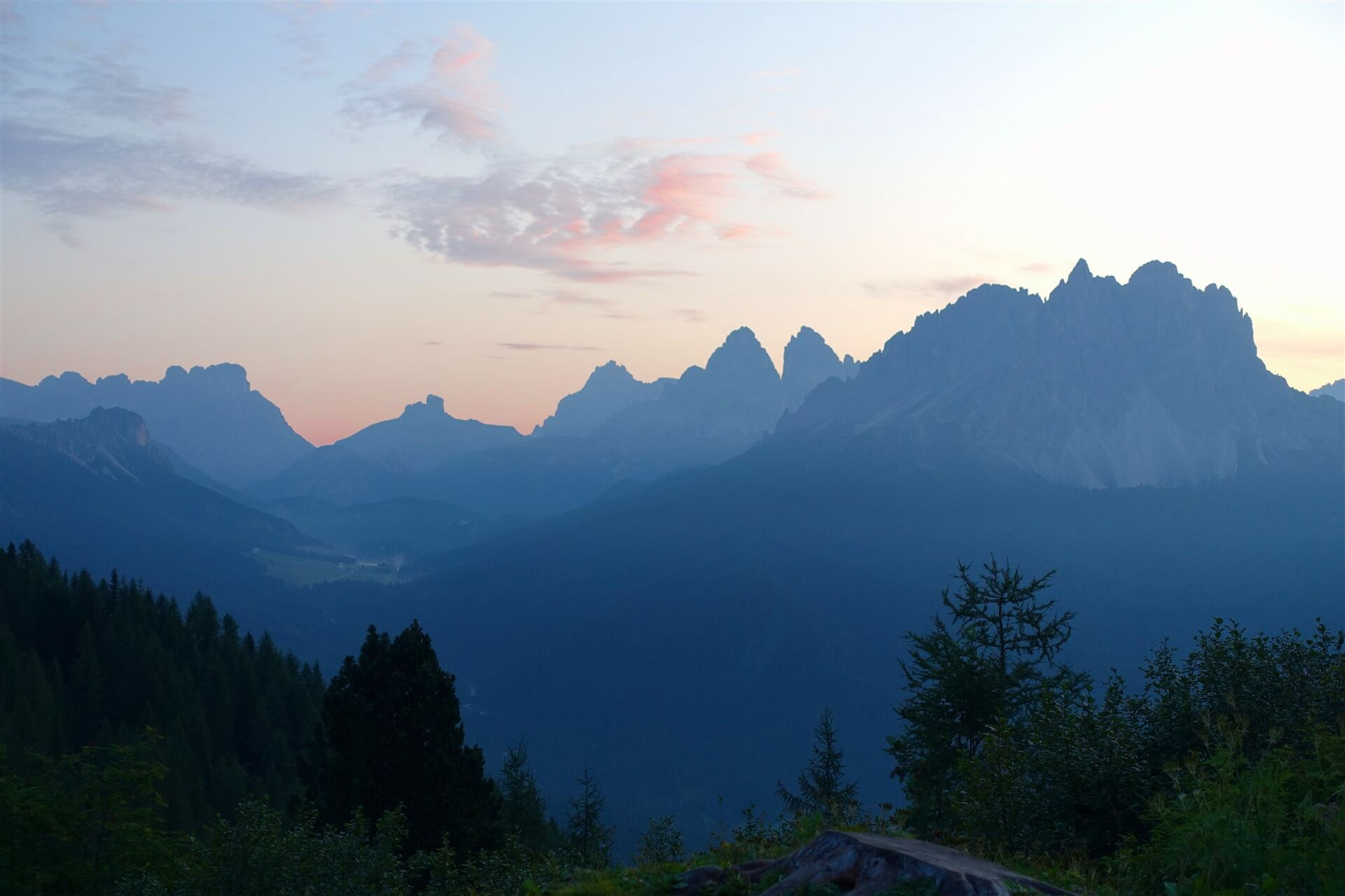 Dolomiten-Höhenweg 3 - blaue Stunde über der Civettagruppe, von Osten gesehen