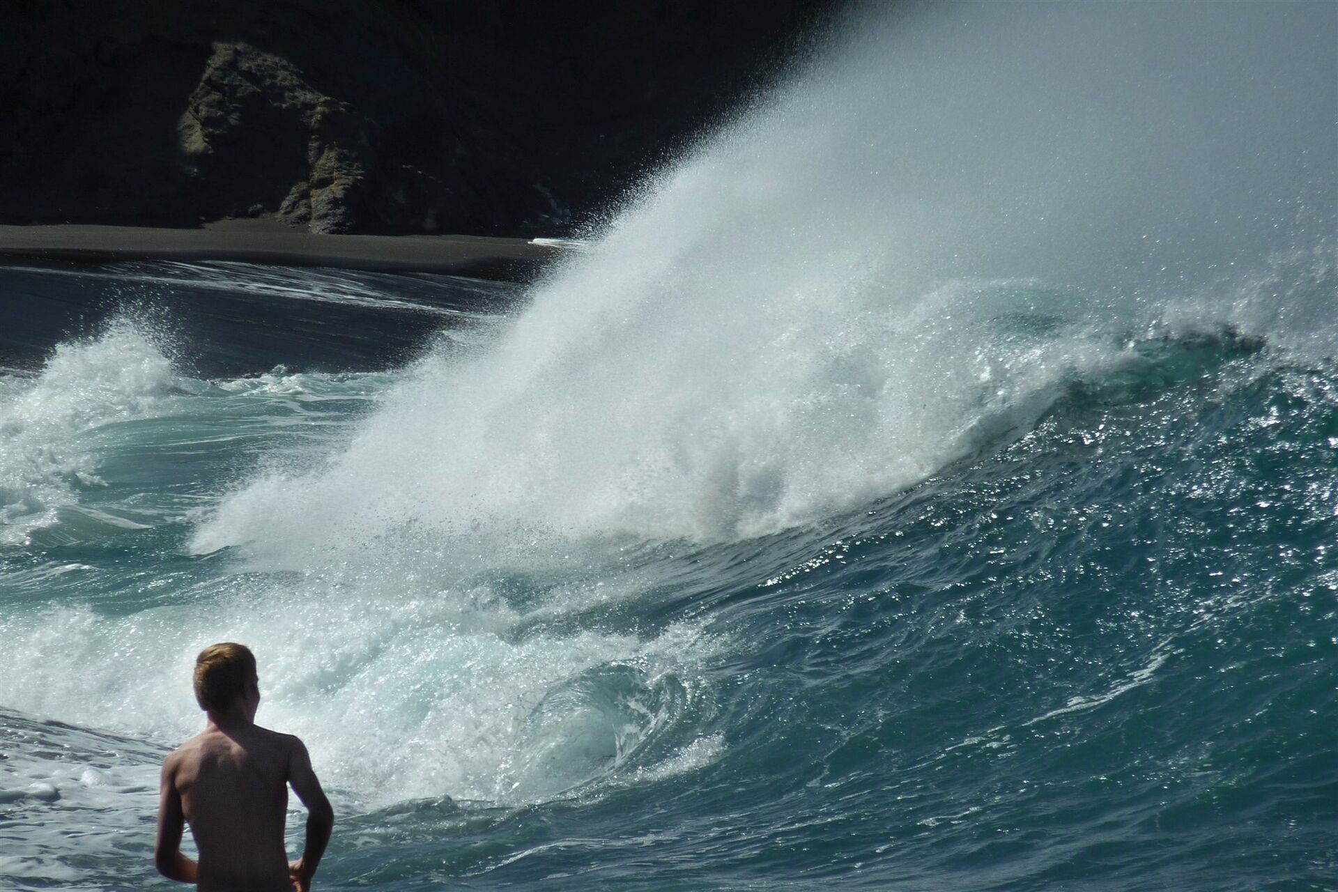 Fuerteventura - riesige Wellen brechen sich an der felsigen Küste