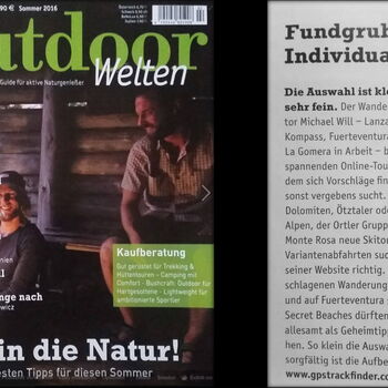 Artikel über GPSTrackFinder im Magazin Outdoorwelten