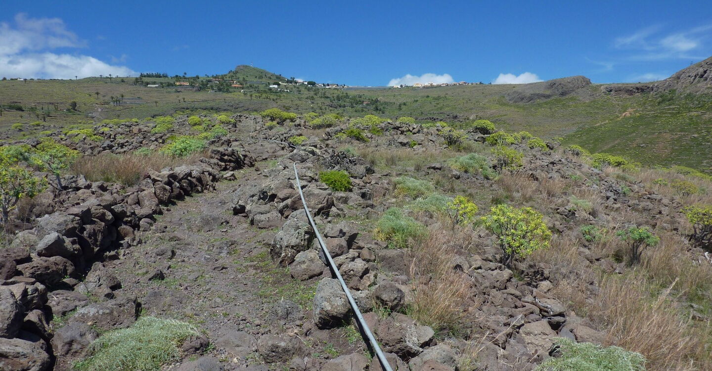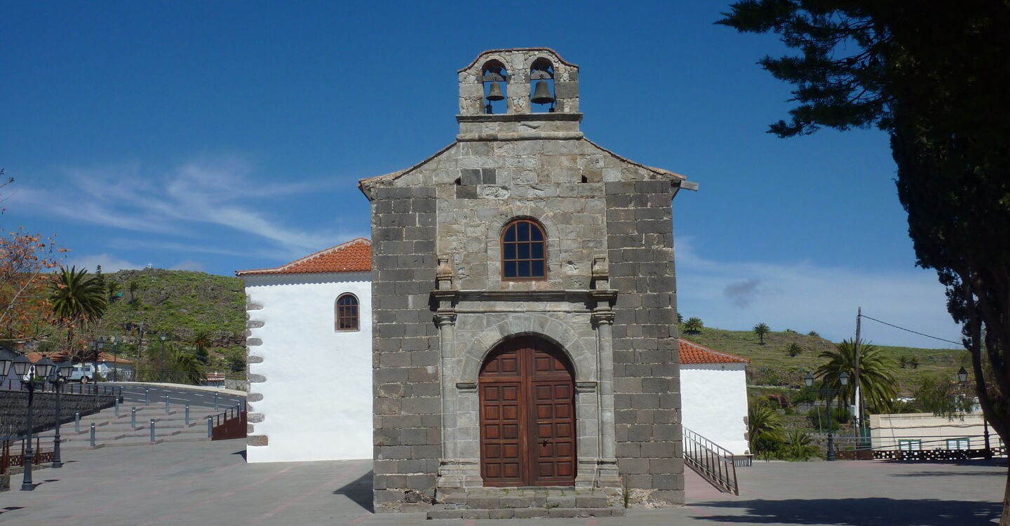Nach 80 m folgen wir rechts der Ausschilderung Richtung (02) Ermita de San Isidro Labrador (803 m), bis wir auf einen Parkplatz treffen. Nach weiteren 500 m auf einem gepflasterten Weg haben wir den Mirador de Tagaragunche auf der Montaña del Calvario 806 m und die Ermita de San Isidro Labrador erreicht. An dieser Stelle wachte ein Posten, um nach Piraten Ausschau zu halten oder in Kriegszeiten vor Angreifern zu warnen. Bei guter Sicht ergeben sich atemberaubende Fernblicke: Im Osten angefangen sieht man den Teide auf Teneriffa, bei besonders guter Sicht Gran Canaria, San Sebastián, den Flughafen von La Gomera, die vorgelagerten Bergrücken auf La Palma und El Hierro. Nach dem Abstieg, wir befinden uns bereits auf der Asphaltstraße, biegen wir nach 80 m auf den links beginnenden Pfad ab. Auf dem Camino verlieren wir schnell an Höhe und befinden uns jetzt direkt unterhalb der Montaña del Calvario.