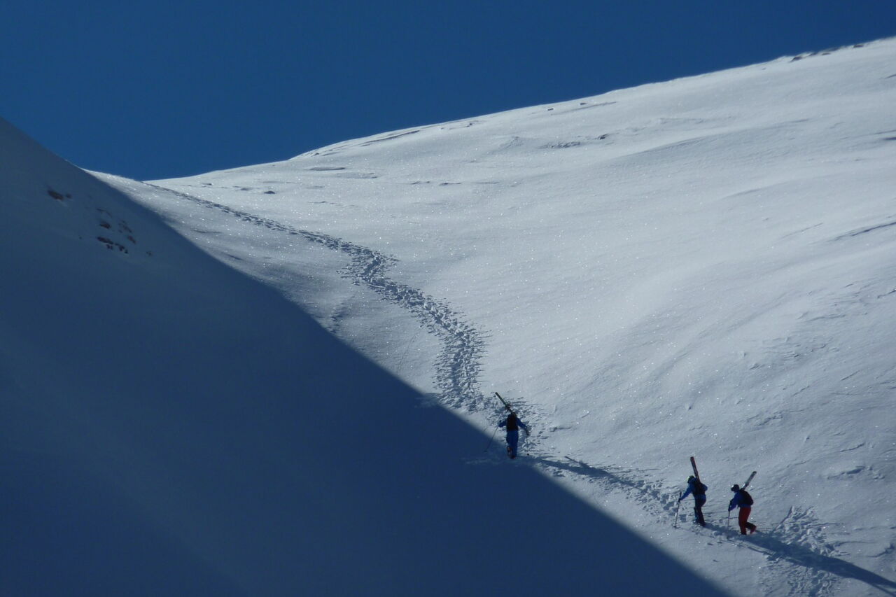 Einfache Orientierung im Anstieg sowie auf der steilen und teils vereisten Abfahrt. Die Abfahrt führt über einen Südhang. Folgende Ausrüstung wird empfohlen: Produkte für alpine Sicherheit im Schnee, Freerideski und Skitourenhelm. Es empfiehlt sich die Einkehr in das Rifugio Maria bei der Bergstation, welches nach Maria Piaz, der Pionierin des Tourismus am Pordoipass, benannt wurde. Beste Jahreszeit: Januar bis April. Uns erwarten kurze Stücke mit bis zu 45° Hangneigung.
