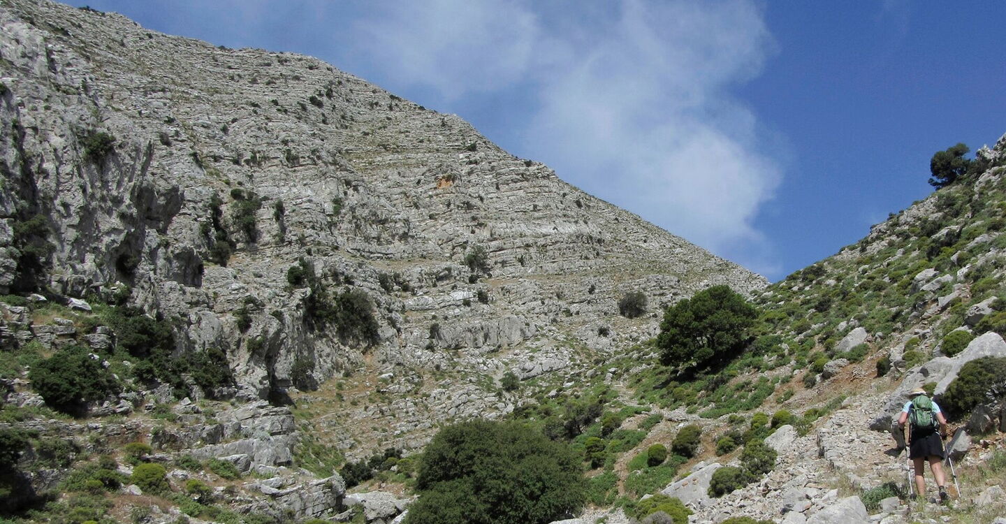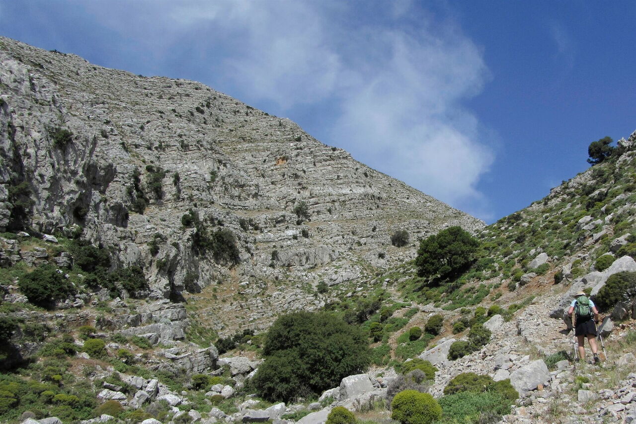 Die Besteigung des höchsten Berges der Insel, dem 1216 m hohen Attaviros, und der Abstieg durch einen Canyon prägen die aufregendste und anstrengendste Wanderung auf Rhodos. Dabei fängt alles so harmlos an: der Aufstieg durch eine Schlucht und über Bergrücken, vorbei an Windrädern und in Serpentinen bergauf bis zum aussichtsreichen Gipfel. Hier kann man sich noch entscheiden, ob man auf dem Hinweg zurückwandert oder durch das Flussbett des Canyons absteigt. Der Abstieg gestaltet sich chaotisch und anstrengend. Durch eine Steinwüste schlängelt sich der Canyon in etlichen Kehren gen Tal. Landschaftlich äußerst beeindruckend – rechts und links steigen imposant die Felswände auf –, fordert das Vorhaben unsere Kondition – wahrhaftig keine Genusswanderung. Trotzdem bleibt ein positives Resümee: die Natur in ihren schönsten Facetten.