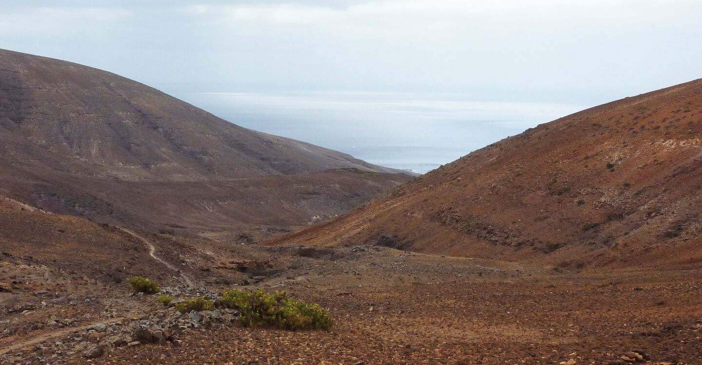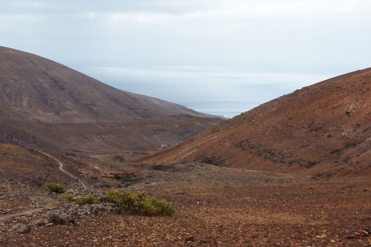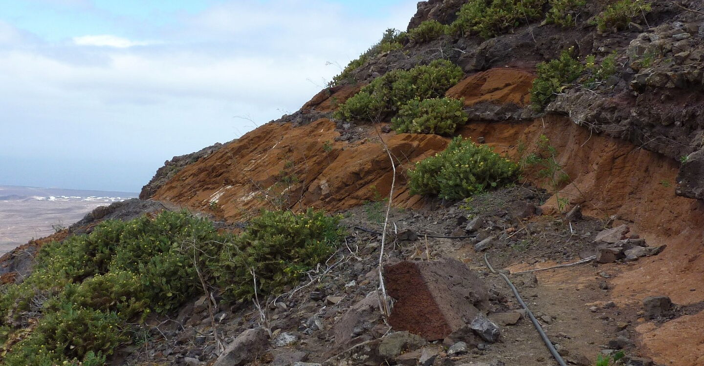 Auf einer Anhöhe folgen wir der roten Markierung und gehen links bis zum Aussichtspunkt (04) Morro de la Loma del Pozo (324 m). Bei guter Sicht kann man ganz links das Hochhaus von Arrecife sehen. Schaut man nach rechts, über den südlichsten Zipfel von Lanzarote, erkennt man die Punta del Papagayo. Sogar bis nach Fuerteventura kann man bei guter Sicht schauen. Wir wandern zurück zur Anhöhe, an der wir nun links gehen. Der Pfad führt vorbei am Rifugio del Ajibe und schon bald erreichen wir das Barranco de la Casita.