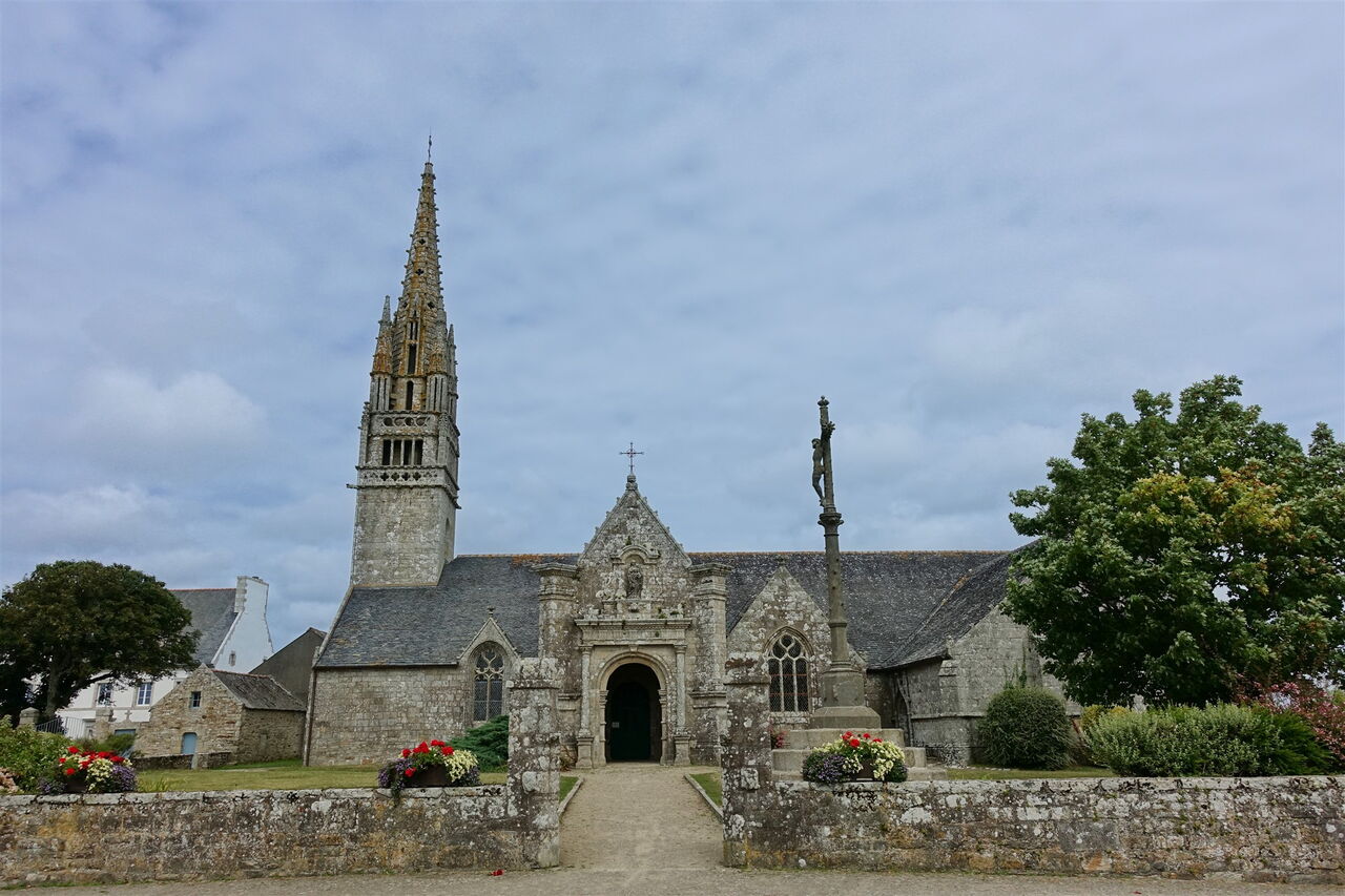Vom Parkplatz gehen wir direkt links neben der Kirche 01 Église Notre-Dame de la Clarté et Saint-Budoc (93 m) durch die Gasse und auf der weiterführenden Straße an den Einzelhäusern vorbei. Am Ende der Straße laufen wir rechts und nach 570 m, bei der Kreuzung verlassen wir die Hauptstraße nach links, auch ausgeschildert Richtung Pellay. Die Straße schlängelt sich durch Häuser, dahinter haben wir freien Blick auf das Meer.