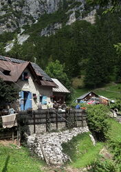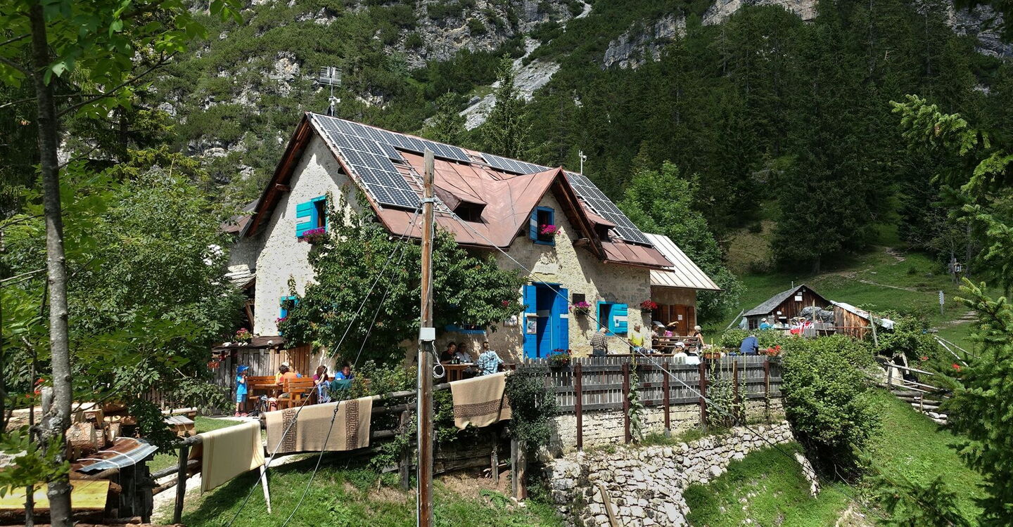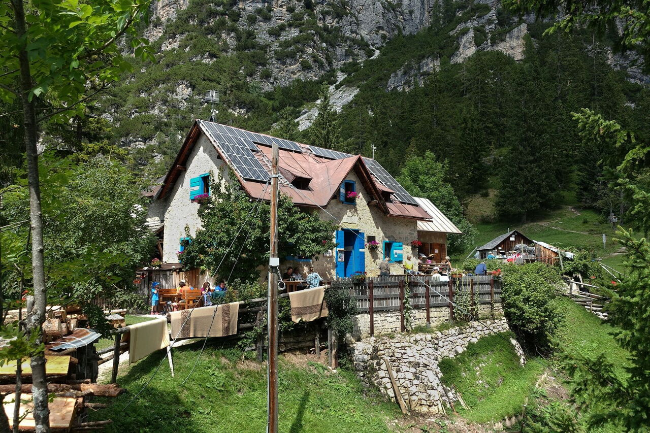Über eine Folge von Gras- und Latschenhängen und durch den Wald erreichen wir kurz vor dem 05 Rifugio San Marco (1.823 m) eine Quelle. Die Hütte selbst liegt romantisch und mit traumhafter Fernsicht auf dem grünen Bergrücken des 1.823 m hohen Col de Chi Os.