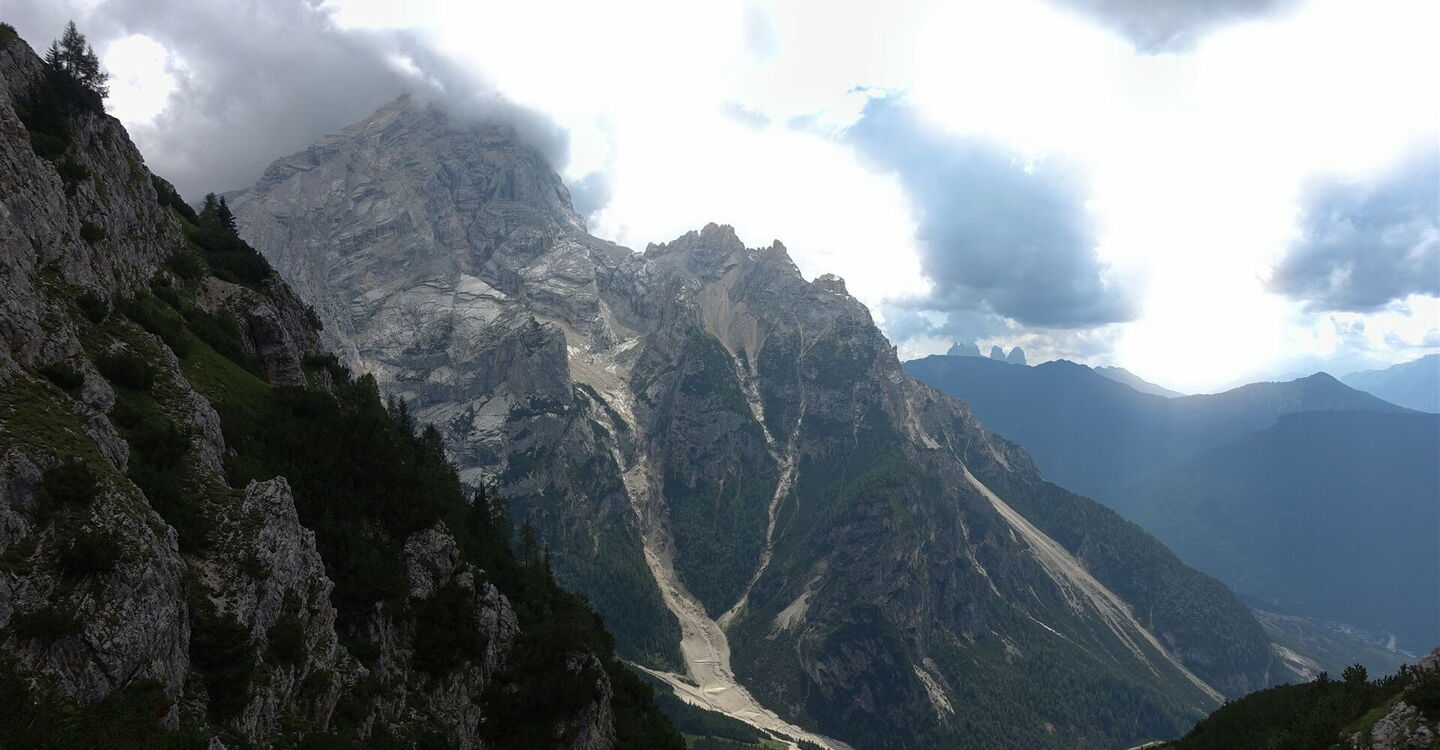 Nach den Strapazen der Tour 61 folgt eine Genusswanderung und zugleich ein einzigartiges Naturspektakel. Vom Bivacco Slataper, dem letzten Stützpunkt vor einer Gipfelbesteigung, wandern wir bergab durch ein weites Kar – unterhalb der imposanten Wände der südlichen Sorapissgruppe. Der nächste Wegpunkt, die Forcella Grande – in deren unmittelbarer Nähe sich der spektakuläre Torre dei Sabbioni erhebt –, markiert den Übergang von der Sorapissgruppe in die Marmarole-Gebirgsgruppe. Sobald wir dann das Rifugio San Marco sehen, erhebt sich dahinter majestätisch die Antelaogruppe mit dem 3.264 m hohen Antelao – nach der Marmolata die zweitgrößte Zinne der Dolomiten. Die Antelao-Marmarole-Sorapiss-Gruppe wird von keinen Straßen durchschnitten, man findet unberührte Wildnis vor, wie man sie selten in den Dolomiten antrifft.