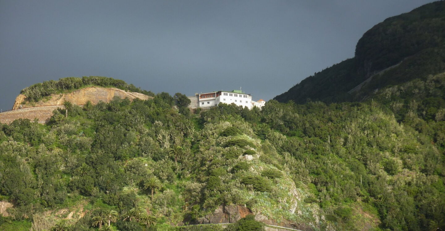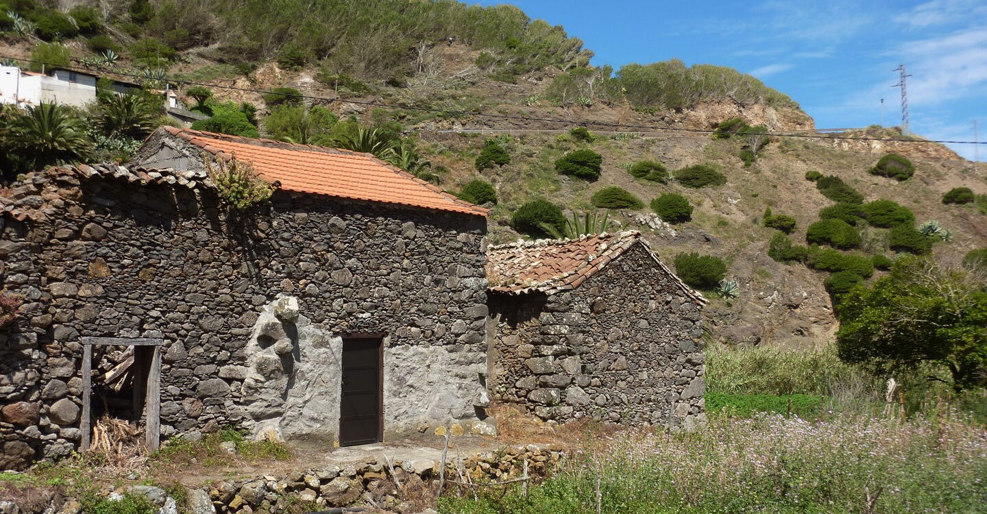 Wir erreichen eine kleine Einsattelung mit einem Stromhaus und gehen hier rechts zur Asphaltstraße herunter, dann ein kurzes Stück links, um sofort wieder rechts nach (04) Epina (641 m) am Nordwestrand des Garajonay-Nationalparks zu gelangen. Nach einer lang gezogenen Linkskehre treffen wir auf ein Geländer, das rechts zum Dorfkern hinaufführt. Gehen wir an dieser Stelle 20 m weiter und dann links, so treffen wir auf eines der ältesten Häuser der Region, bekannt unter dem Namen La Pila. Es ist aus Stein und Schlamm gefertigt und verfügt über arabische Dachziegeln sowie ein Satteldach.