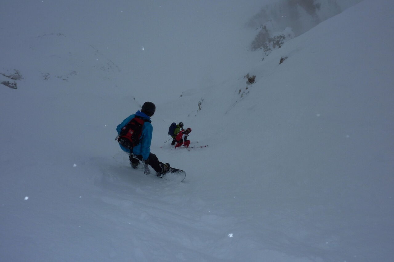 Einfache Orientierung auf der gesamten Strecke. Der Einstieg ist sehr steil! Die Abfahrt führt über einen Nordhang. Folgende Ausrüstung wird empfohlen: Produkte für alpine Sicherheit im Schnee, Freerideski und Skitourenhelm. Es empfiehlt sich die Einkehr in das Rifugio Cimabanche am Ende der Tour. Beste Jahreszeit: Januar bis April. Uns erwarten kurze Stücke mit bis zu 45° Hangneigung.