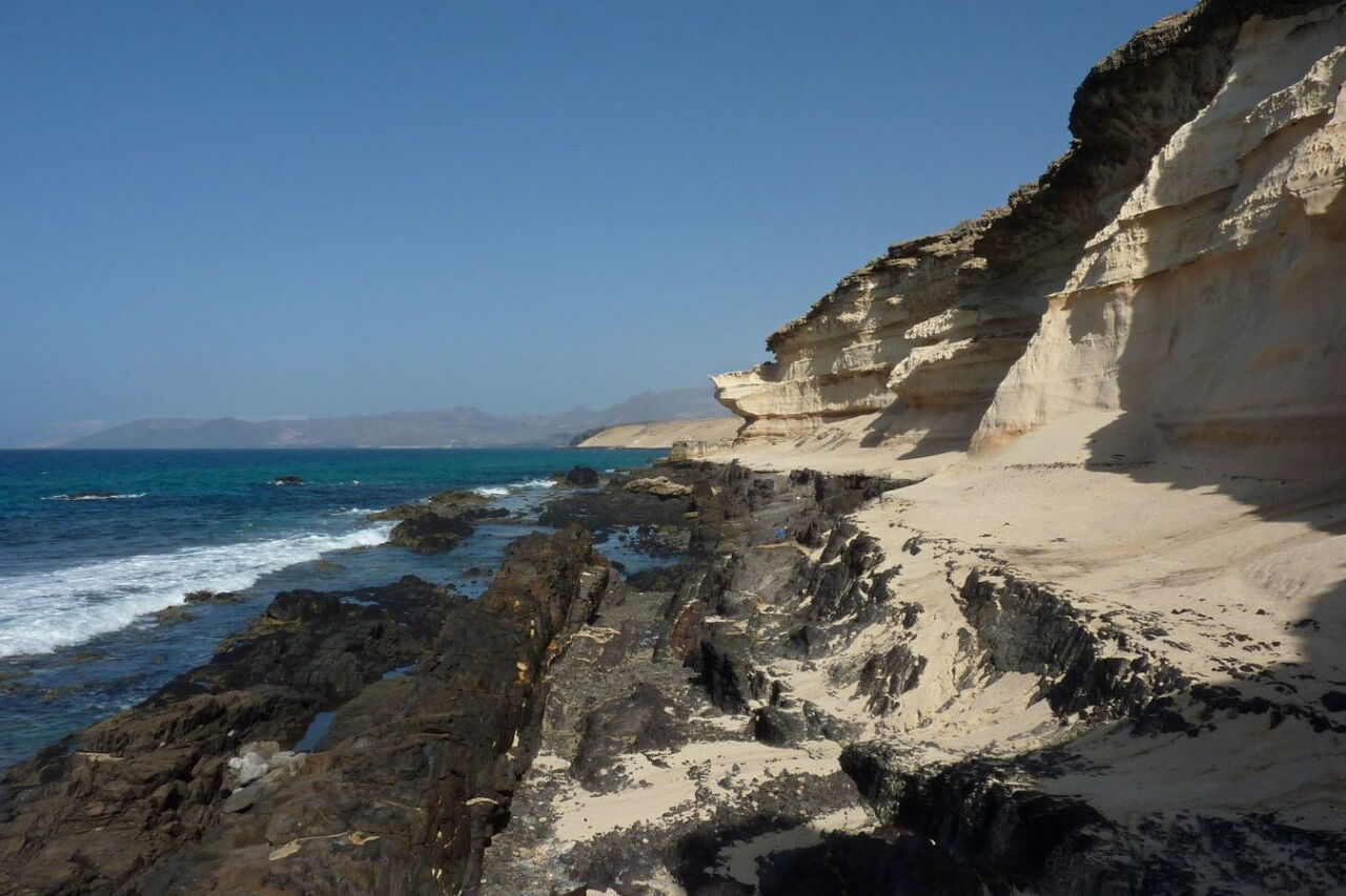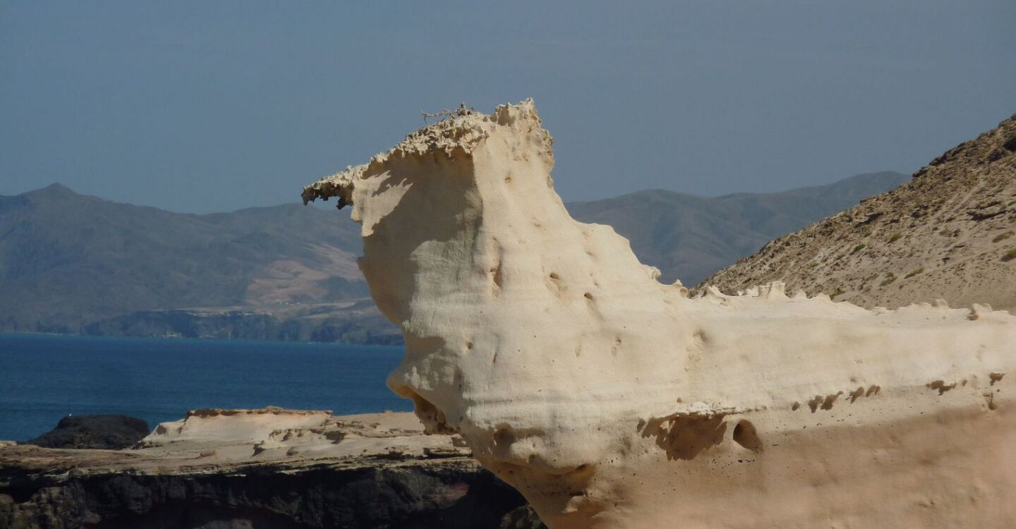 Eine extrem beeindruckende Wanderung durch das Naturschutzgebiet Jandia, die stark an die Durchquerung einer Wüste erinnert. Dabei läuft man auf dem Hinweg immer entlang der schmalsten Stelle von Fuerteventura, die hier nur einen Durchmesser von 4,5 km hat. Steigt man zwischen den Klippen zur Westküste herunter, so lässt sich miterleben, wie die gewaltigen, meterhohen Wellen mit tosendem Lärm an die Küste prallen – ein Erlebnis, das wir niemals vergessen werden. Auch die vom starken Passatwind geformten Sandsteinobjekte bieten unzählige Fotomotive. Ein besonders kraftvoller Ort – die Westküste von Fuerteventura.