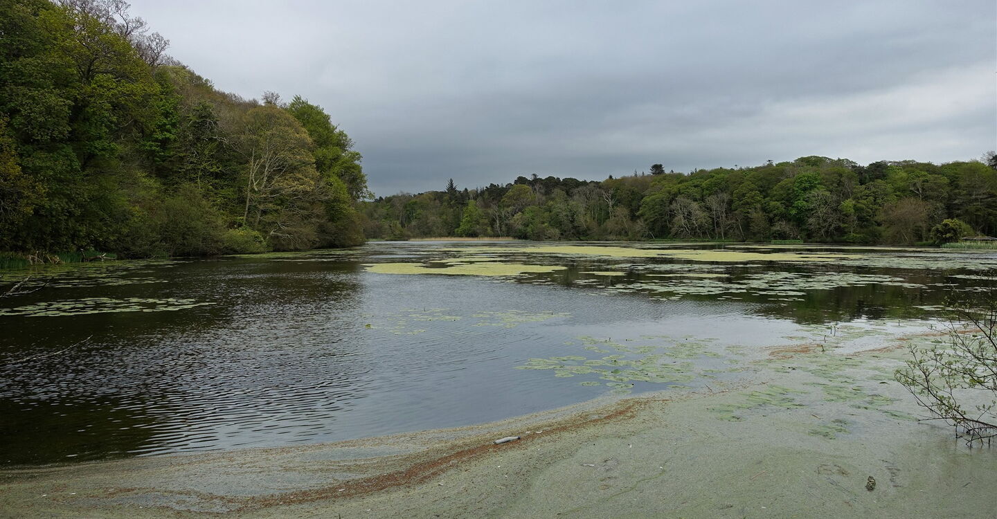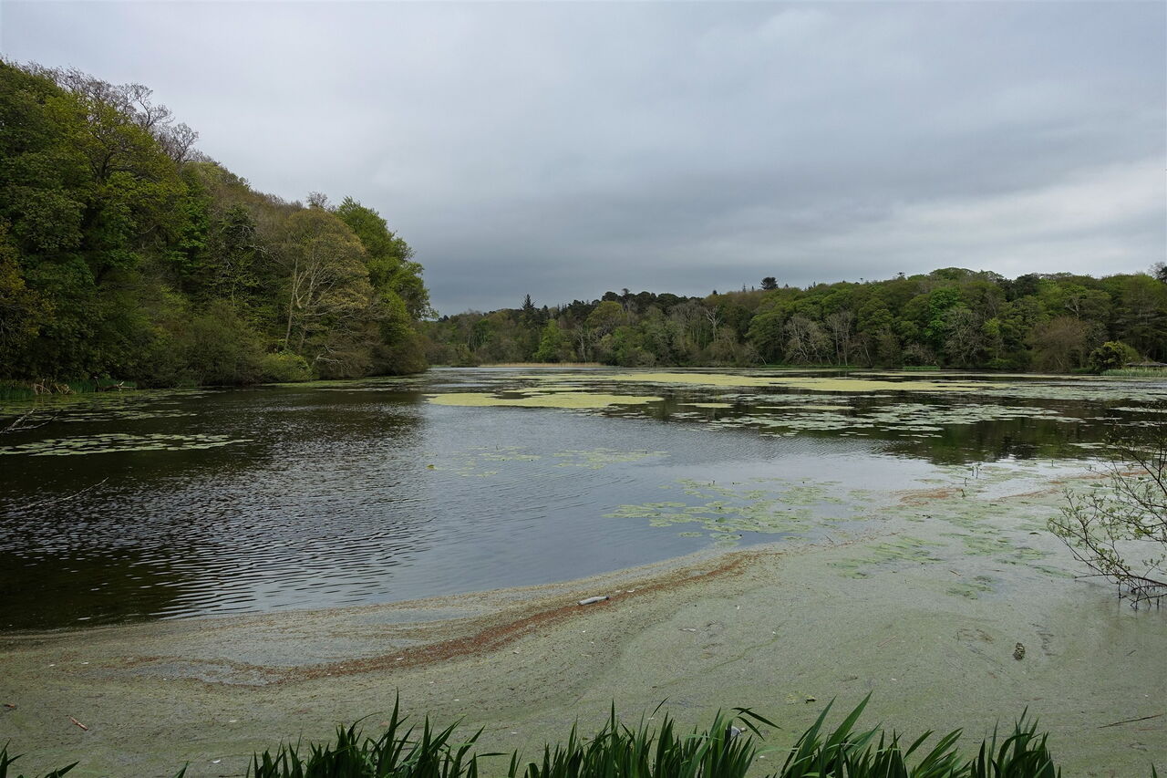 Abzweigende Wege und Pfade ignorieren wir und gehen gerade auf den wunderschön gelegenen 02 Swan Pond (29 m) zu. Über eine Brücke queren wir den Ablauf des Ponds und gehen nicht direkt dahinter parallel zum Ablauf, sondern bei der darauffolgenden Weggabelung halb links bergauf und nach 20 m links bergauf. Bei Holztreppen mit Geländer führt der Weg dann wieder bergab. Wir treffen auf ein weiteres Geländer und gehen bei der anschließenden Weggabelung links. Der Pfad mündet in einen breiteren Weg, auf dem wir unsere Wanderung links fortsetzen, bis wir links des Weges die erste Sehenswürdigkeit sehen, das alte Waffenhaus, in dem die Kanonenkugeln aufbewahrt wurden. Bei dem darauffolgenden Gedenkstein gehen wir links den Treppenweg hinunter und entlang des Kieselsteinstrandes.