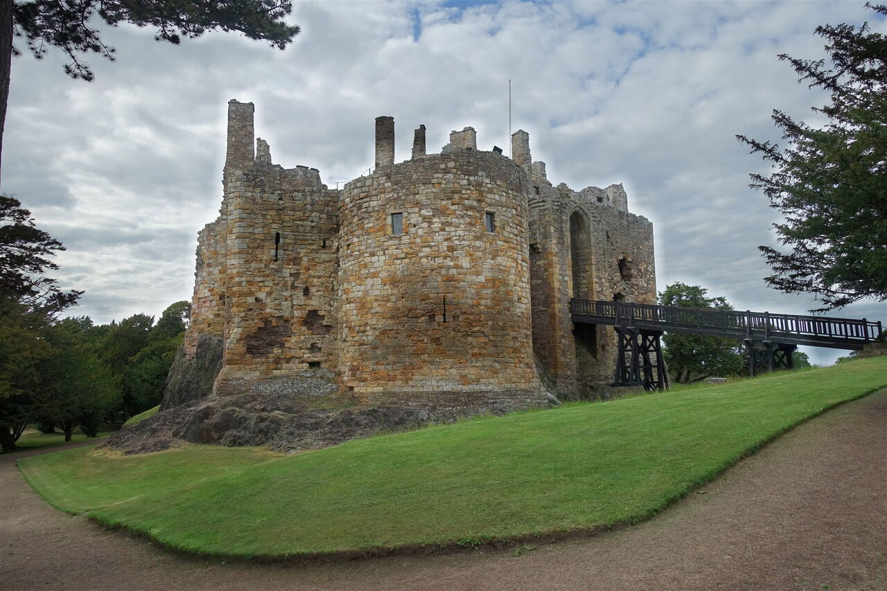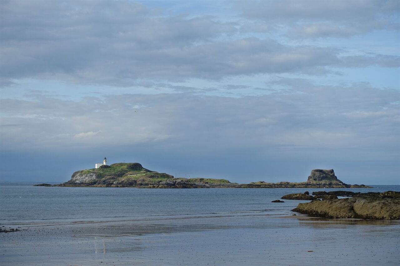 Rechts können wir bereits die hohe Mauer sehen, die das 02 Dirleton Castle (26 m) umgibt. Die Türme wurden 1240 erbaut, die prächtige Festung war über insgesamt 400 Jahre das Zuhause von drei aufeinanderfolgenden Adelsfamilien. Die im 19. und 20. Jahrhundert errichteten Gärten verzaubern den Besucher. Öffnungszeiten: 1. Oktober bis 31. März täglich von 09:30–17:00.