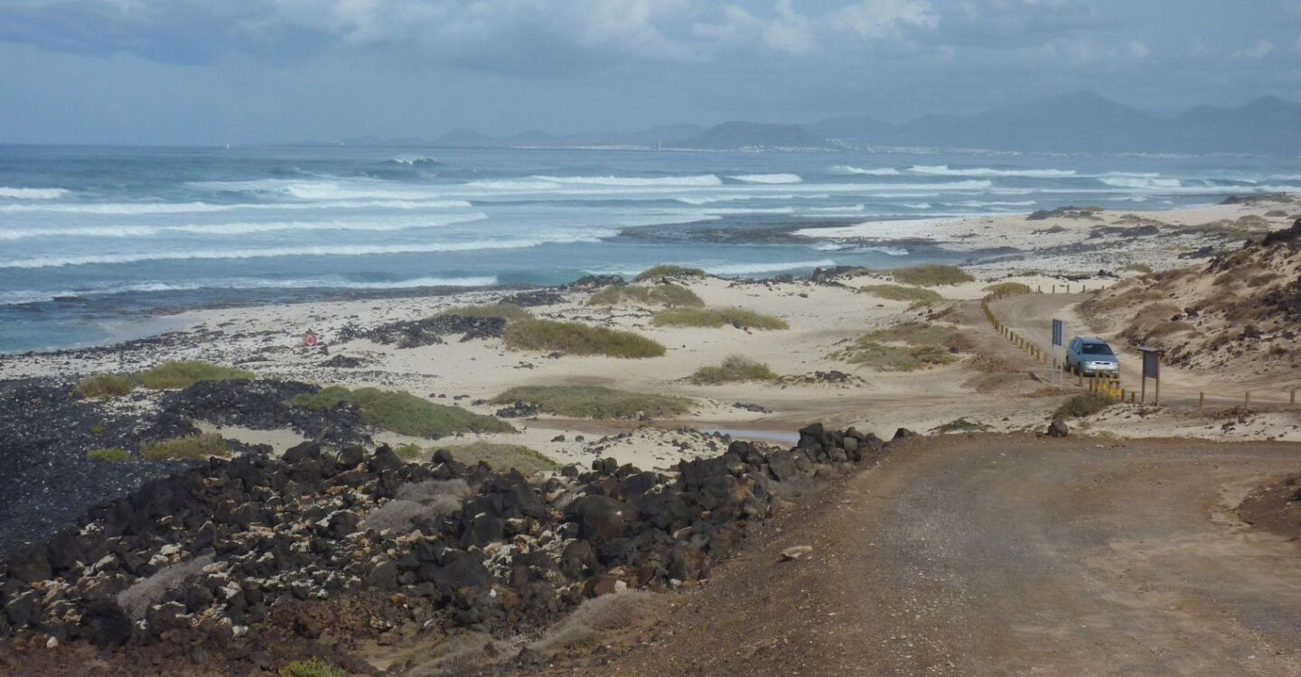 Vom (01) Start El Cotillo (27 m) gehen wir auf der Hauptstraße in westliche Richtung bis in das Ortszentrum und dort direkt auf einem der vielen Pfade entlang der Küste – nun in nördliche Richtung. Vorbei führt der Weg an einer Reihe wunderschöner Sandstrände (Playa Marfolín, Playa Islote und Playa Beatriz) mit weißem Sand. Bei Ebbe ergeben sich hier perfekte Badebuchten. Entgegen der Meinung, der weiße Sand stamme aus der Sahara, besteht der Sand der Strände aus Körnern organischen Ursprungs, wie von Muschelresten oder Restmaterialien kalkhaltiger Algen. Im Zusammenspiel mit dem Wind bildeten sich kleine Dünenfelder, wie wir sie entlang der Küste bei El Cotillo bewundern können. Die Wanderung führt direkt am Strand entlang. Es wechseln immer wieder sandige Buchten mit felsigen Abschnitten.