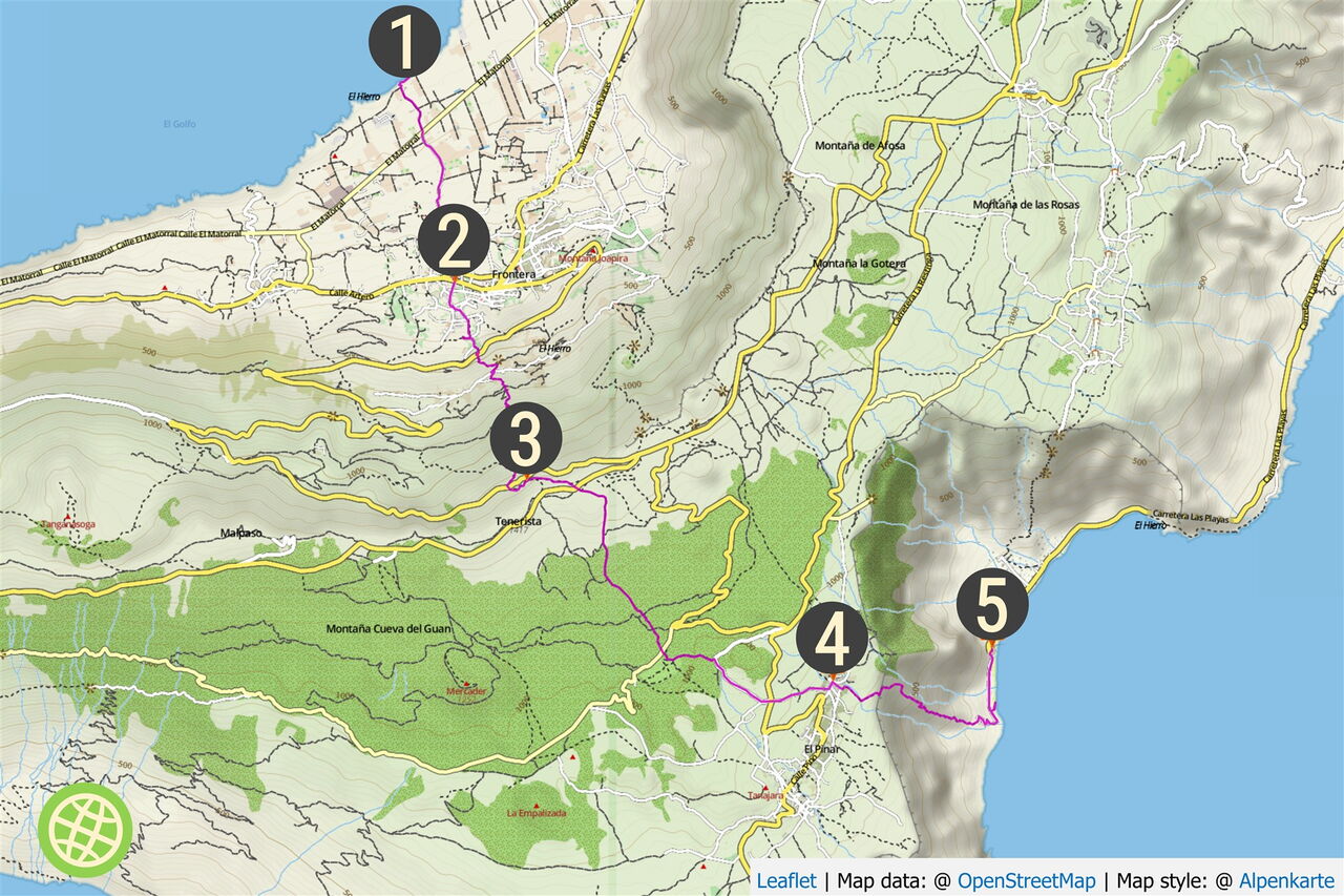 Wie der deutsch-tschechische Autor Jan Rys (1930 bis 1986) sagte: Das Bergsteigen wird durch die Existenz von Bergen sehr erschwert. Das wird die Herausforderung bei der heutigen Überquerung des zentralen Bergmassivs von El Hierro sein. Der sportlich ambitionierte Bergsteiger durchwandert die Sukkulentenstufe, den thermophilen Buschwald, den immergrünen Lorbeerwald und das Gebiet der Kiefernwälder – naja, einfach alle Vegetationszonen der Insel. Trotzdem gilt: Langsam entkommt man dem Alltag am schnellsten.