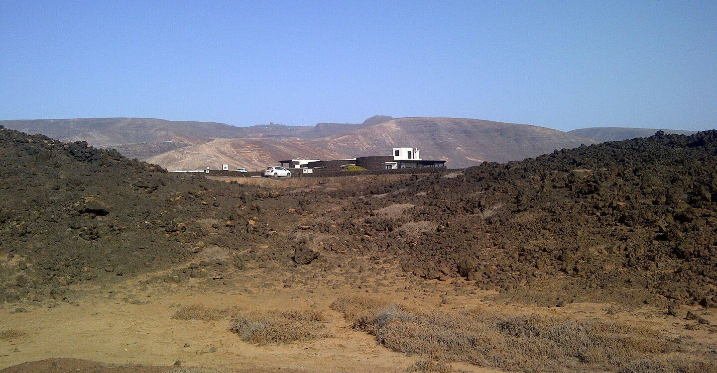 An der (01) Bushaltestelle Plaza de Guatiza (98 m) verlassen wir die Hauptstraße und gehen in östlicher Richtung auf der Calle Ramirez Cerda, vorbei an der weißen Kirche Iglesia Santo Gusto mit ihren dunklen, kontrastreichen Lavasteinecken. Hinter der Kirche biegen wir rechts ab in die Calle Tanausu, um nach 200 m links in die Calle Vincente und bei der nächsten Wegkreuzung abermals links zu gehen. Wir haben den Ort bereits weit hinter uns gelassen, wenn wir eine Weggabelung mit einer winzigen Verkehrsinsel erreichen. Geradeaus beginnt eine Schotterstraße, aber wir gehen links in Richtung der Ortschaft Los Cocoteros. Die Straße macht eine Linkskurve und führt parallel an Naturschwimmbecken vorbei. Vor der ersten Häuserreihe Richtung Meer führt ein Weg in nördliche Richtung. Vom Ortsende aus sehen wir in 500 m Entfernung ein großes weißes Anwesen, unser nächster Orientierungspunkt. An diesem gehen wir auf einem schmalen Pfad links vorbei, um dann leicht bergauf zu gehen.