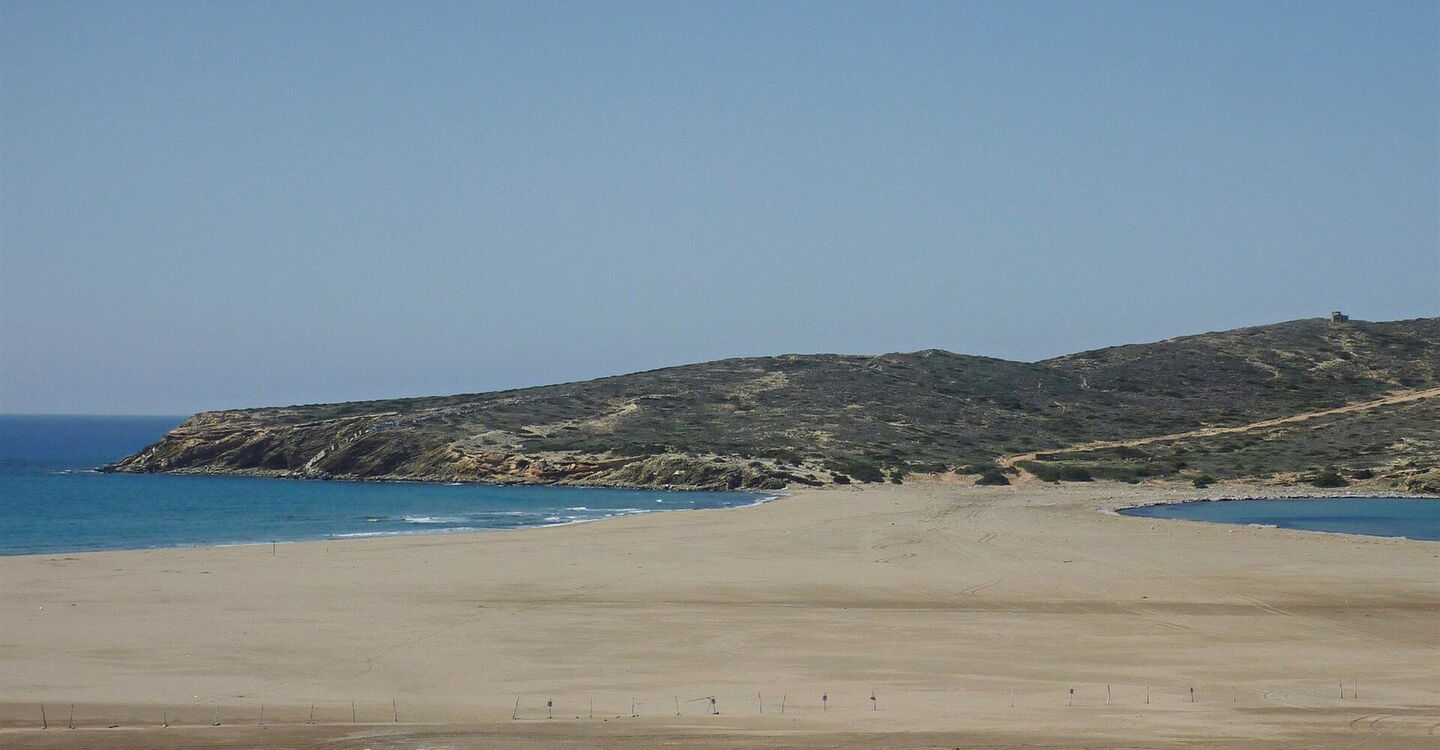 Prasonissi bezeichnet zum einen die vorgelagerte und unbewohnte Insel. Prasonissi nennt man aber auch den 900 m langen und bis zu 700 m breiten Sandstrand, der sich von der Südspitze aus in beide Richtungen erstreckt. Hier befindet sich der Ausgangspunkt der Wanderung. Nach einem kurzen Ausflug in die antike Geschichte Griechenlands wandern wir über die vorgelagerte Insel zu einem Leuchthaus. Der Blick von der Anhöhe über das weite blaue Mittelmeer ist traumhaft. Auf dem Rückweg machen wir noch einen Abstecher zu einem versteckten Sandstrand mit einer astreinen Badegelegenheit in einer windgeschützten Bucht.