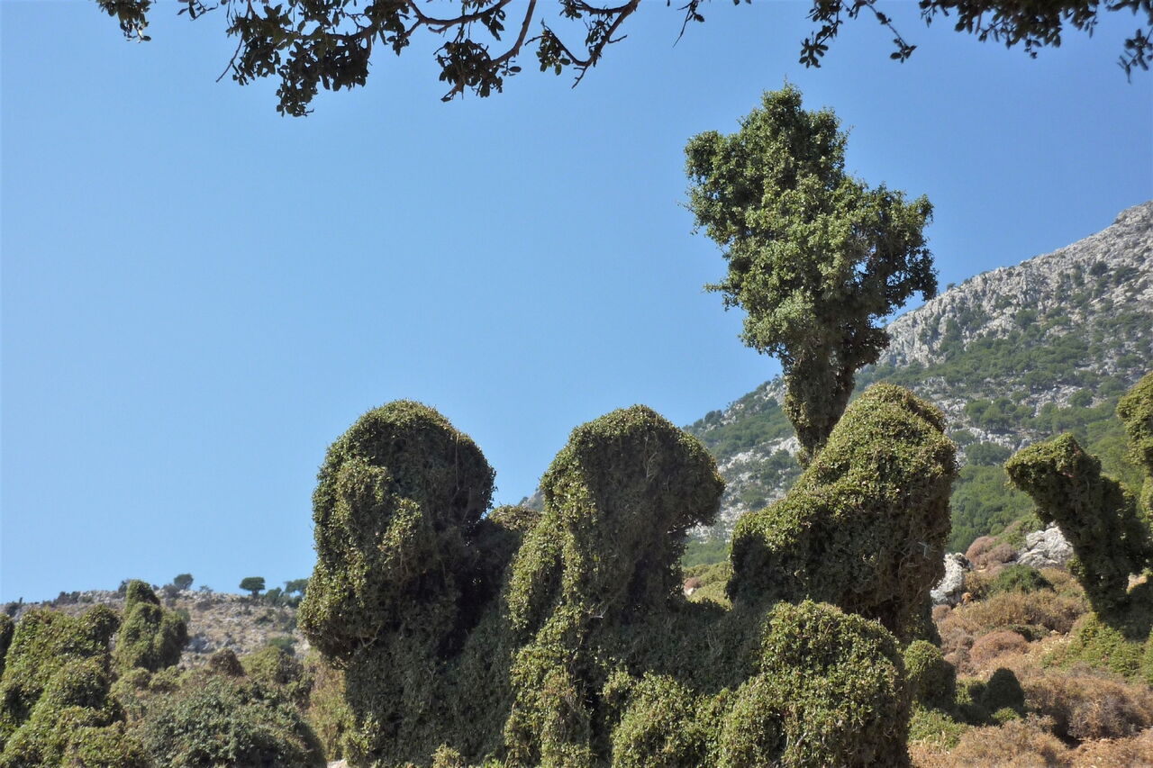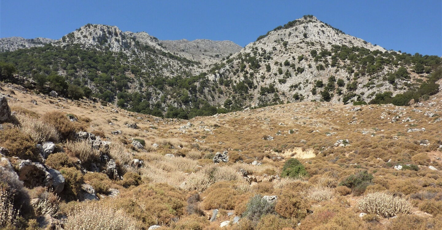 Von der Unterkunft in 01 Kato Asites (552 m) gehen wir auf der bergab führenden Asphaltstraße bei der ersten Möglichkeit rechts und anschließend halb rechts – direkt hinter der Kirche – weiter auf einer betonierten Piste. Dort, wo diese Piste eine Rechtskehre macht, gehen wir geradeaus auf der Schotterpiste weiter.