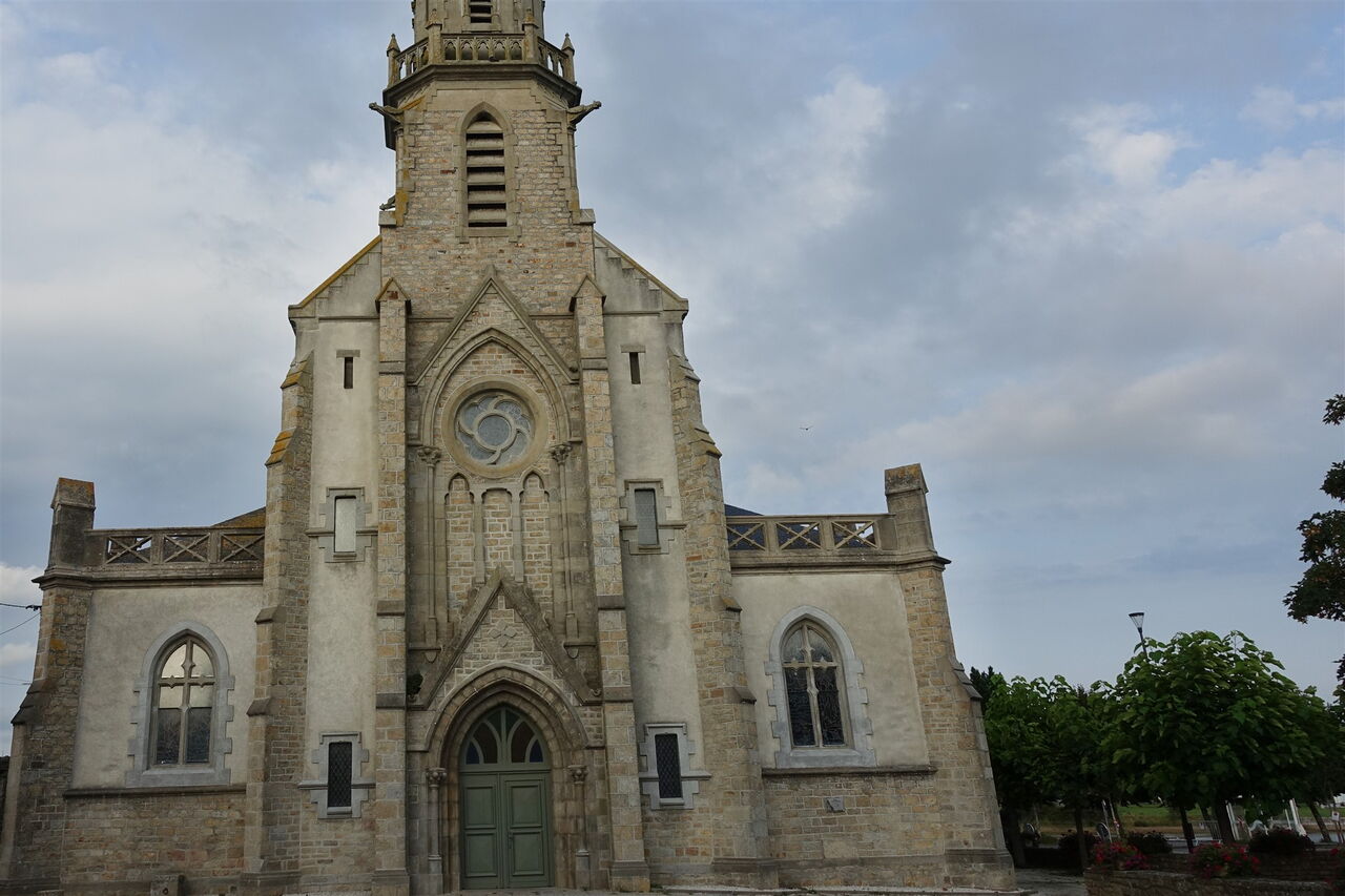 Hinter einer Zufahrtsstraße geht es wieder direkt am Strand entlang. Kurz später laufen wir ein kurzes Stück auf einer Straße. Der Pfad führt nun in einem großen Bogen an einer Bucht entlang, direkt auf eine Kirche zu. Auf einem markierten Wegstück erreichen wir über extrem schmale Gassen – teilweise muss man den Rucksack abnehmen, um überhaupt hindurchzukommen – die Straße, an der wir rechts gehen, sodass wir an der 02 Église Sainte Radegonde (2 m) vorbeikommen. Direkt hinter dem Damm gehen wir rechts. Bei der darauffolgenden Weggabelung gehen wir nicht halb rechts zum Meeres- und Naturmuseum La Maison de l'Ile Kerner, das auf der Halbinsel in der Lagune liegt, sondern halb links, um nach 250 m hinter der kleinen Grünanlage nach rechts abzubiegen. Dieses Wegstück ist auch ausgeschildert. Nachdem der Weg einmal seine Richtung nach rechts und dann nach links geändert hat, gehen wir wieder parallel zu den Marschwiesen in der Lagune. Der weitere Weg: Es geht vorbei an einem Parkplatz mit Picknicktischen, einen linken Abzweiger nach Le Dreff ignorieren wir. Der Pfad führt direkt über die Marschwiesen und es geht über einen künstlich angelegten Damm.