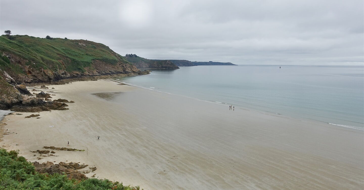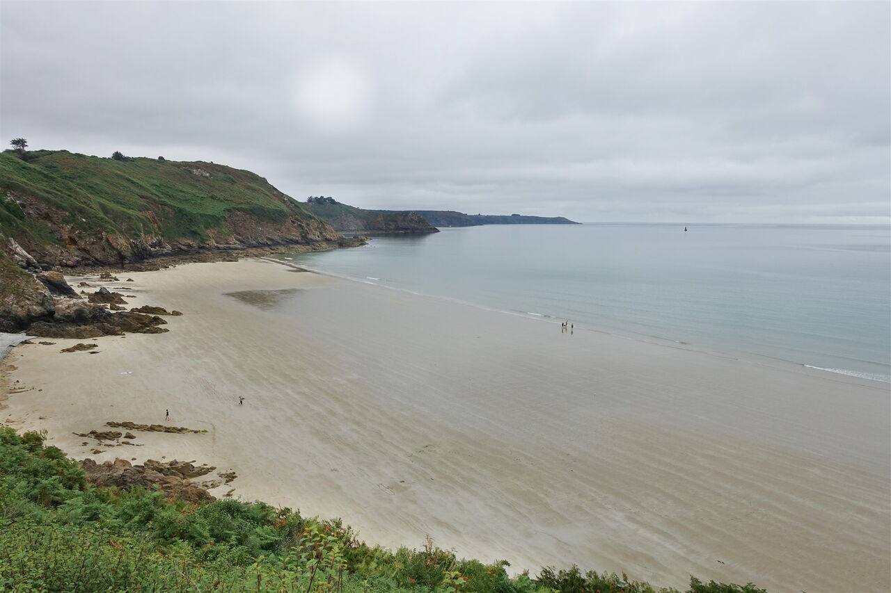 Der nachfolgende Küstenpfad ist klar definiert, in Kürze ein paar Stichpunkte: Wir umlaufen eine lange Schlucht; es geht an einem Parkplatz vorbei; an einer Straße – rechts unterhalb befindet sich der kleine und romantische 05 Port Gwin Zégal (65 m) – gehen wir links bergauf, um dann rechts auf den weiterführenden Pfad zu gelangen; es geht an unerreichbaren Kieselsteinstränden vorbei; wir queren das obere Ende eines Parkplatzes, danach folgt noch einmal ein satter Anstieg; der Pfad mündet in eine asphaltierte Straße, hier gehen wir rechts; am Ende der Straße geht es auf dem weiterführenden Pfad bis zum Ausgangspunkt.