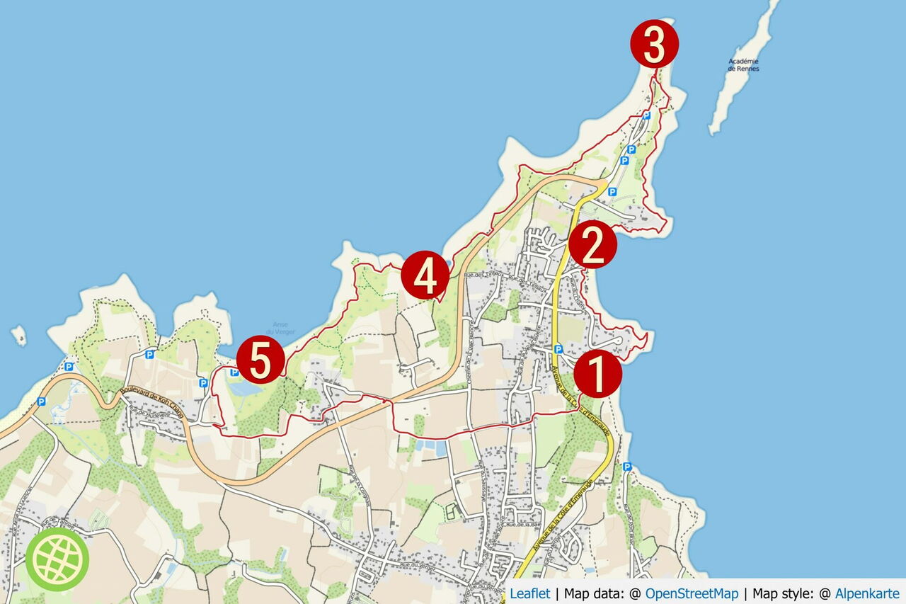 Mittelschwere Wanderung und einfache Wegfindung. Art des Weges: 10 % Straße, 30 % Piste und 60 % Pfad. Zusatzausrüstung: Keine. Einkehr: Restaurants am Wege bei km 3,07 und km 5,46. Empfehlung in der Region 4 km entfernt: Crêperie Breton Breizh Café | Crêpe einmal ganz anders. Bertrand Larcher serviert diese bretonische Spezialität in mehreren Lokalen in Japan. Diese erstklassige Crêperie hat er in seinem Heimatland eröffnet. | €€ | 7 Quai Thomas, 35260 Cancale | https://breizhcafe.com | Reservierungen unter +332998961 | Öffnungszeiten täglich von 12:00 bis 22:00 | Geokoordinaten 48.670881 -1.851846 | Beste Wanderzeit: Ganzjährig. Sehenswert Region: Nur 15 km entfernt befindet sich die Altstadt von Saint-Malo.