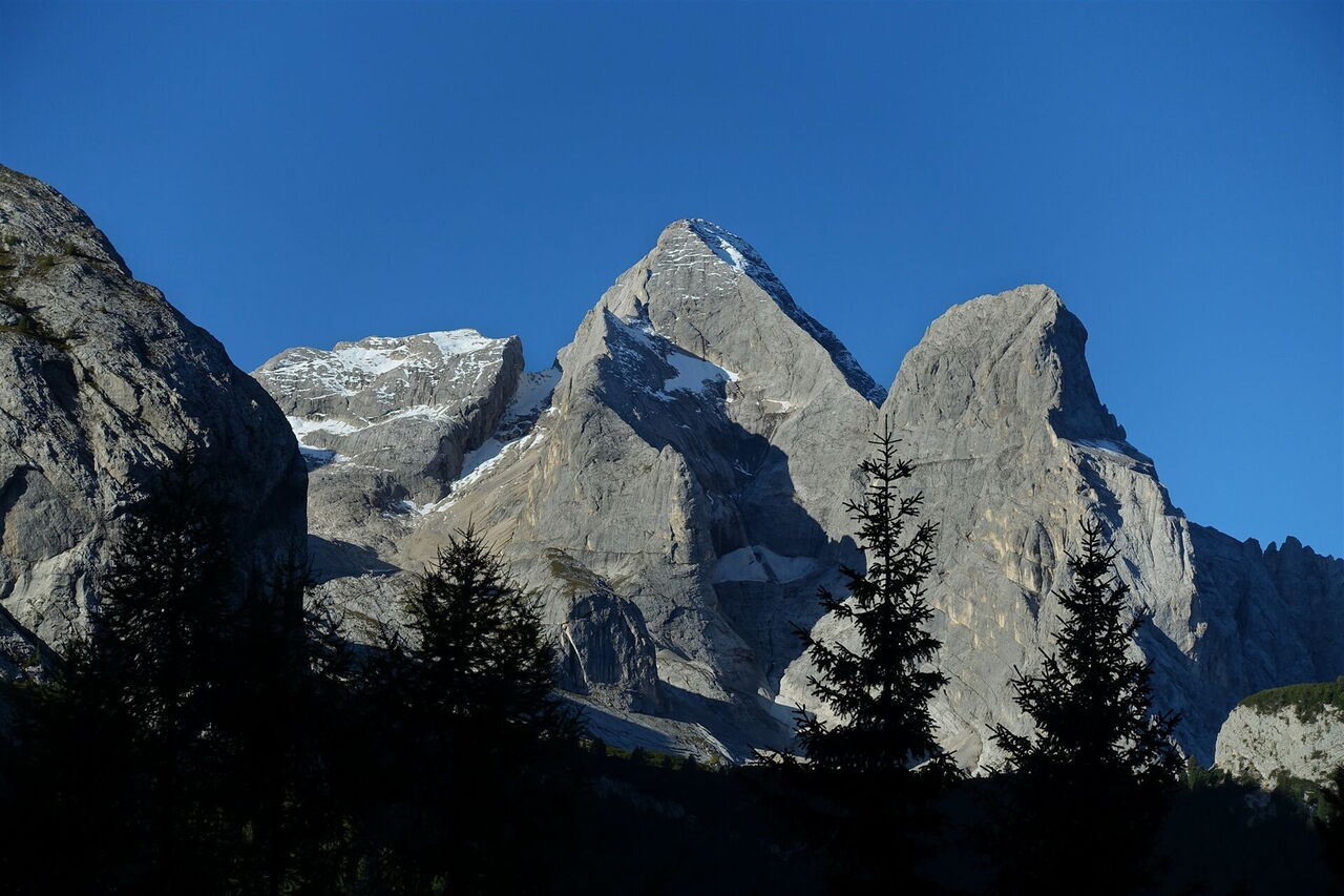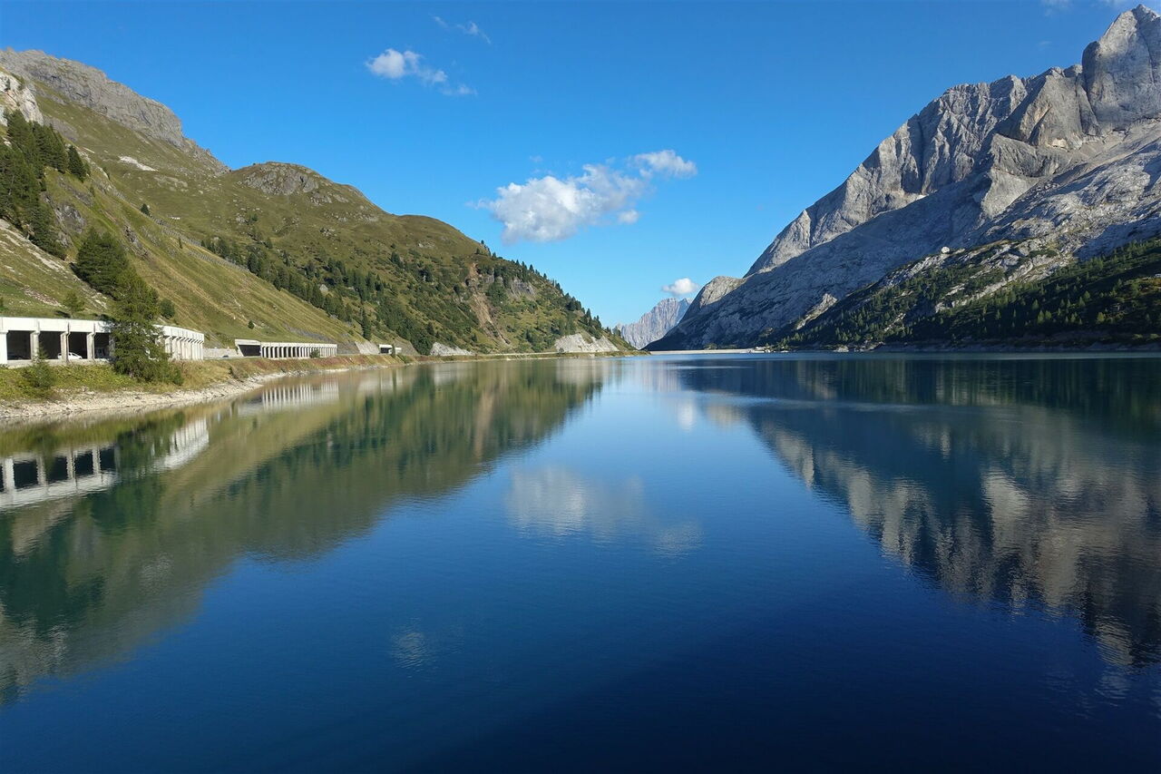 Schwierigkeitsgrad Blau (Tour 38) oder Schwarz (Tour 53), das ist hier die Frage! Bei zu erwartendem schlechten Wetter oder fehlender Klettersteigerfahrung ist es ratsam, sich gegen die Tour 53 über die 2.896 m hohe Marmolata-Scharte zu entscheiden. Stattdessen wählt man die Tour 38, die Etappe 9 von 21. Diese führt durch eine sich ständig verändernde Landschaft und zwei traumhaft gelegene Täler. Dabei eröffnen sich immer wieder umwerfende Blicke auf die omnipräsente Marmolata mit ihren steilen Wänden und mächtigen Bergspitzen.