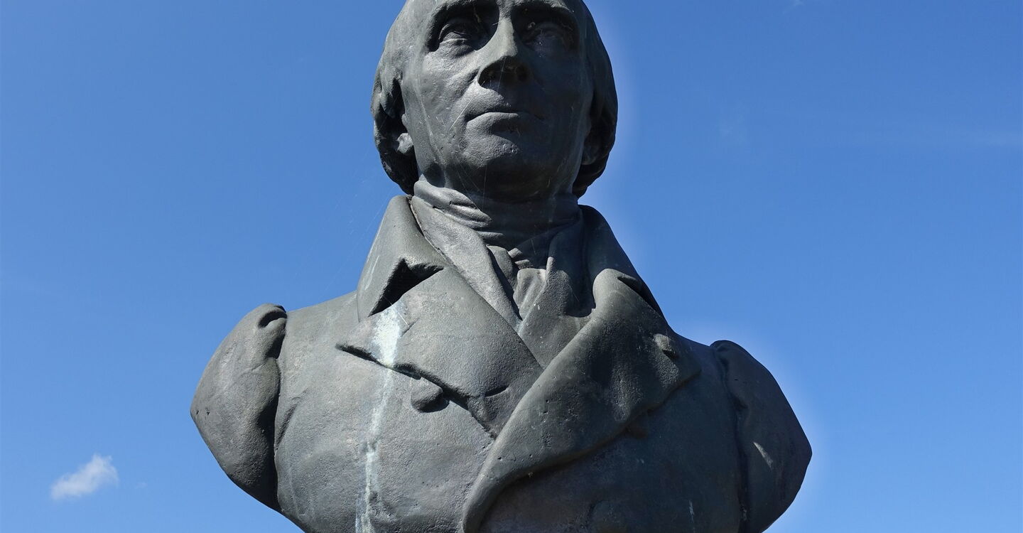 Wir gehen bis zur Stelle am See zurück und dann dort geradeaus weiter. Hinter einem weiteren Steinkreuz erreichen wir erste Häuser, gehen durch die Einbahnstraße, am Friedhof vorbei und direkt auf die Büste von 05 René-Louiches Fountains Tremblay (71 m) zu, der in der Nähe von Tremblay geboren wurde. Er lebte von 1750 bis 1833, war passionierter Botaniker und Mitglied der französischen Akademie der Wissenschaften und Medizin. Gehen wir in der eingeschlagenen Richtung weiter, so erreichen wir die Hauptstraße – rechts befindet sich der Parkplatz.