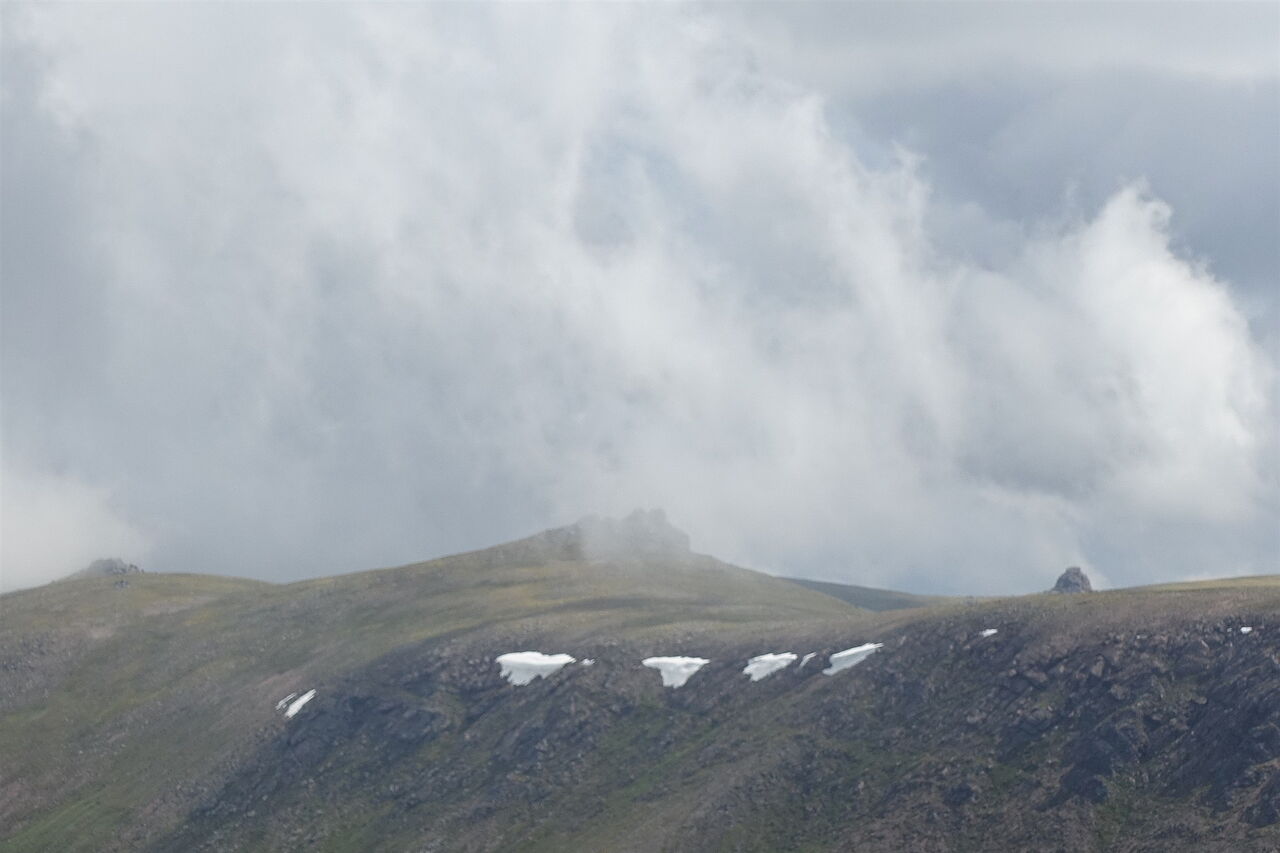 Nachdem wir die Nacht unterhalb der Einsattelung verbracht haben, steigen wir wieder zu dieser auf und beginnen mit dem Aufstieg auf dem nach Nordosten ausgerichteten Pfad. Über kleine Schotterfelder steigen wir zu einer ersten Anhöhe auf, um dann nochmals in eine kleine Senke abzusteigen. Bei guter Sicht ragen die Granitfelsen des 01 Leabaidh an Daimh Bhuidhe (1171 m) hoch aus der Ebene heraus.