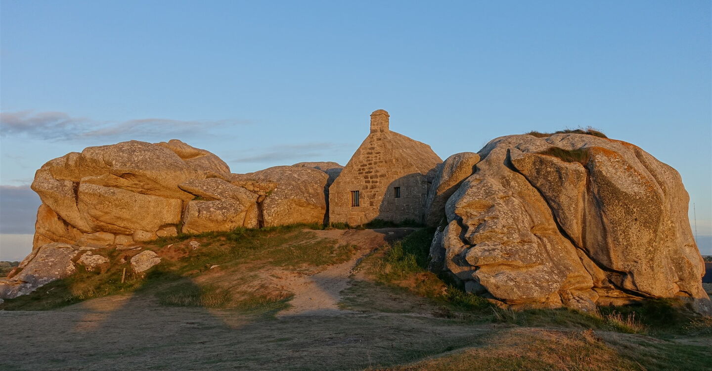 Viele Reiseführer berichten nur wenig über diese sehr erwähnenswerte Sehenswürdigkeit. Die erste Hälfte der Wanderung führt am vierthöchsten Menhir Frankreichs vorbei und verläuft entlang von Acker- und Weideflächen. Auf dem Zöllnerpfad verzaubern uns bizarr geformte Felsbrocken, Dünenlandschaften und wunderschöne Strandabschnitte – ja, schon fast therapeutische Landschaften. Der Name Meneham steht für ein altes bretonisches Dorf mit bewegter Geschichte. Ein Museumsdorf mit reetgedeckten Häusern zeigt Exponate und berichtet über die vergangenen Geschehnisse. Außerdem bietet sich die einmalige Gelegenheit, in dem geschichtsträchtigen Ambiente des urigen Restaurants Auberge de Meneham die berühmte regionale Spezialität Kig ha Farz – Fleisch und Fladen – zu probieren. Nach dem kulinarischen Genussmoment folgt der perfekte Ausklang des Tages – bei Sonnenuntergang ergeben sich traumhafte Fotomotive.
