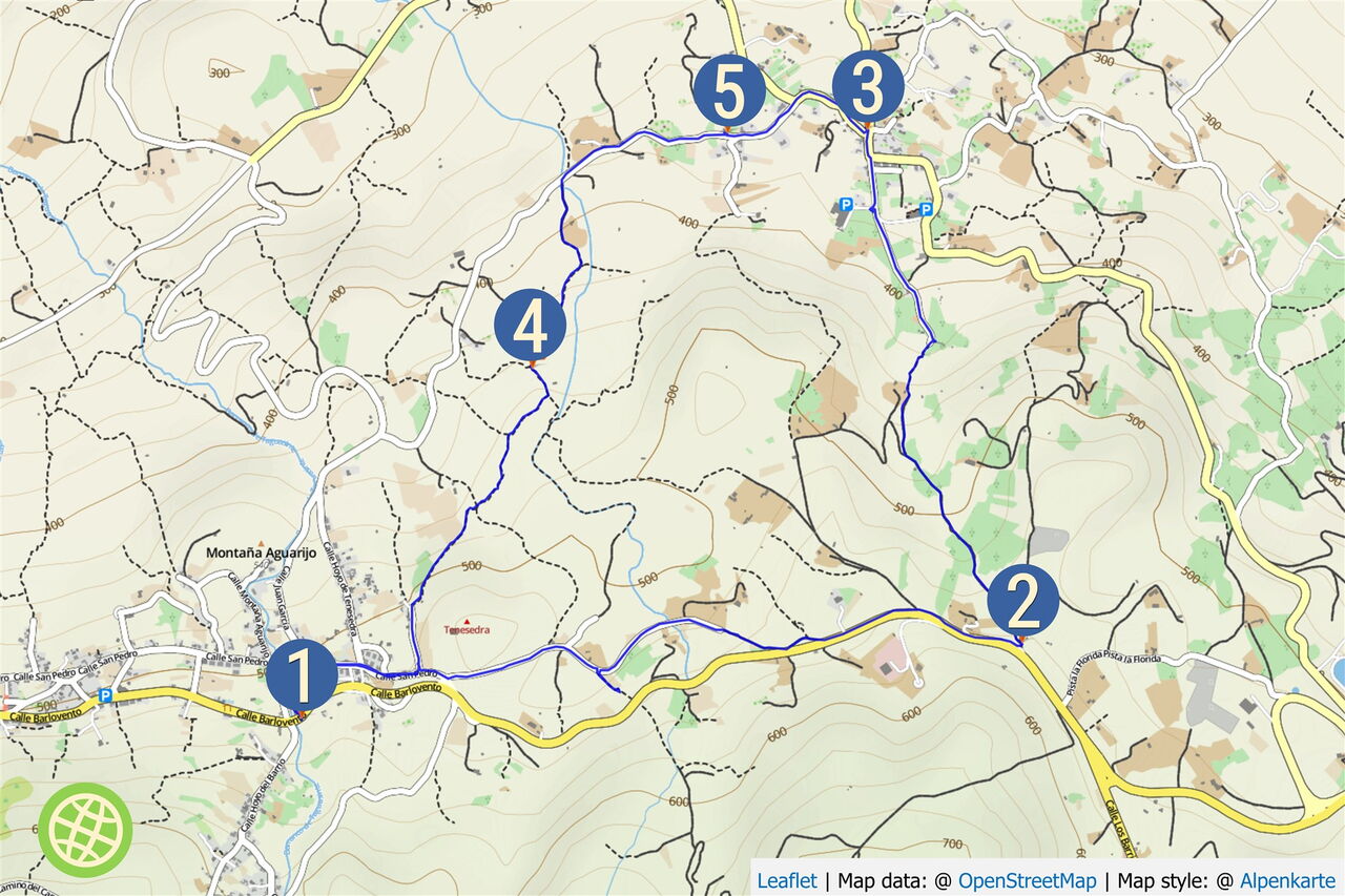 Im Norden der Insel, im Dreieck zwischen den Ortschaften Valverde, Echedo und Mocanal, befinden sich die drei größeren und stark erodierten Vulkane Montana Cueva de la Paja (535 m), Montana Arines (556 m) und Montana Tenesedra (552 m). Durch diese liebliche Vulkanlandschaft führt die heutige Genusswanderung, vorbei an alten und restaurierten Weinpressen und den dazugehörigen Weinfeldern.
