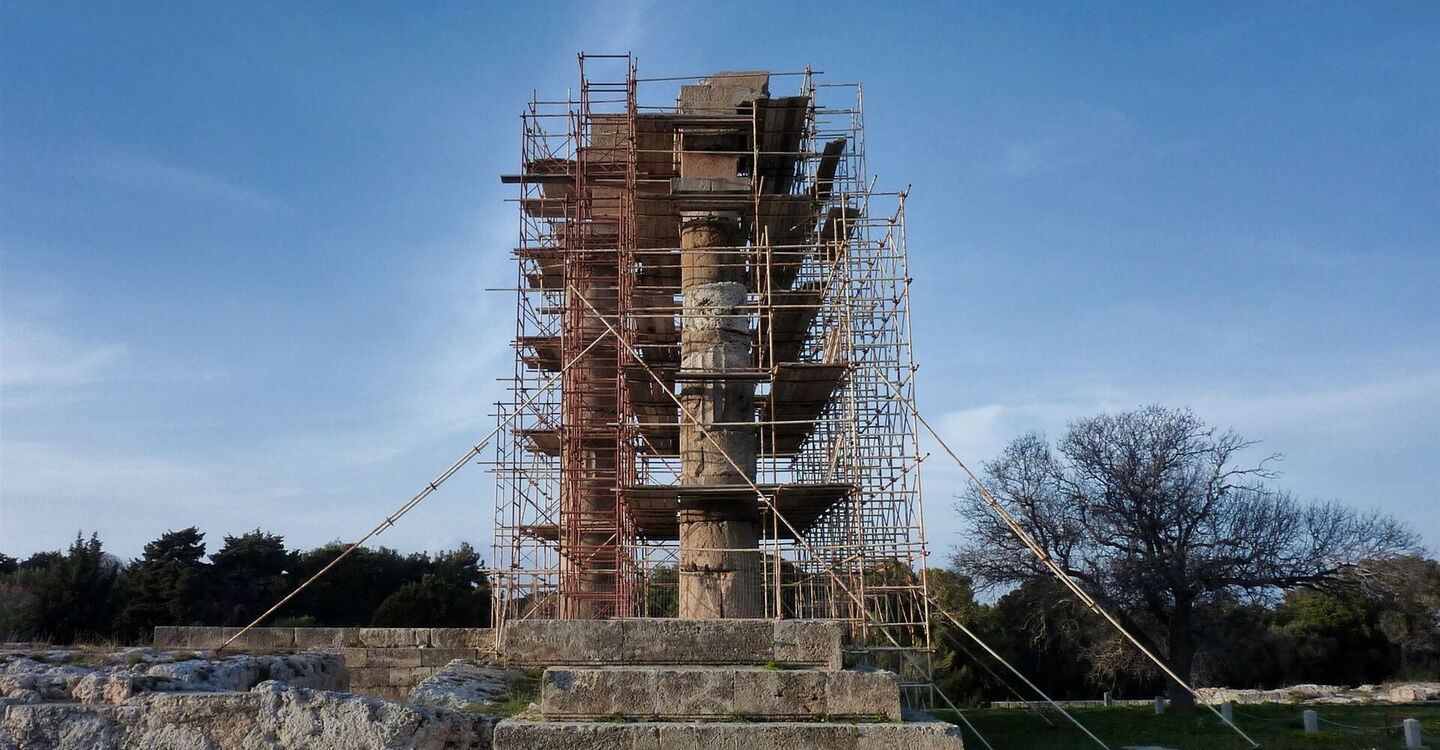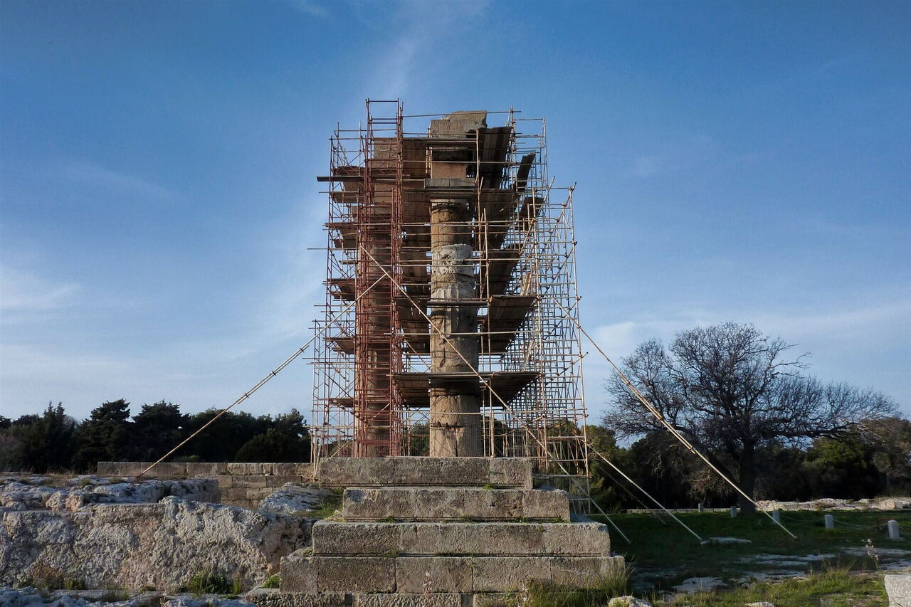 Wir erreichen eine Asphaltstraße und folgen dieser bis in die Linkskehre, wo wir sie verlassen und auf einen Pfad wechseln, der zu einer höher gelegenen Straße führt. Wir befinden uns nun fast auf dem 110 m hohen Monte Smith und die (05) antike Akropolis (79 m) ist in Sichtweite. Wir erreichen die 408 vor Christi gegründete antike Stadt Rhodos mit 3 verbliebenen dorischen Säulen des Apollontempels, den Resten der Tempel der Athena und des Zeus sowie den Resten des 800 Zuschauer fassenden Stadions und eines Theaters. Durch die Parkanlage führt der Weg zurück zum Ausgangspunkt.