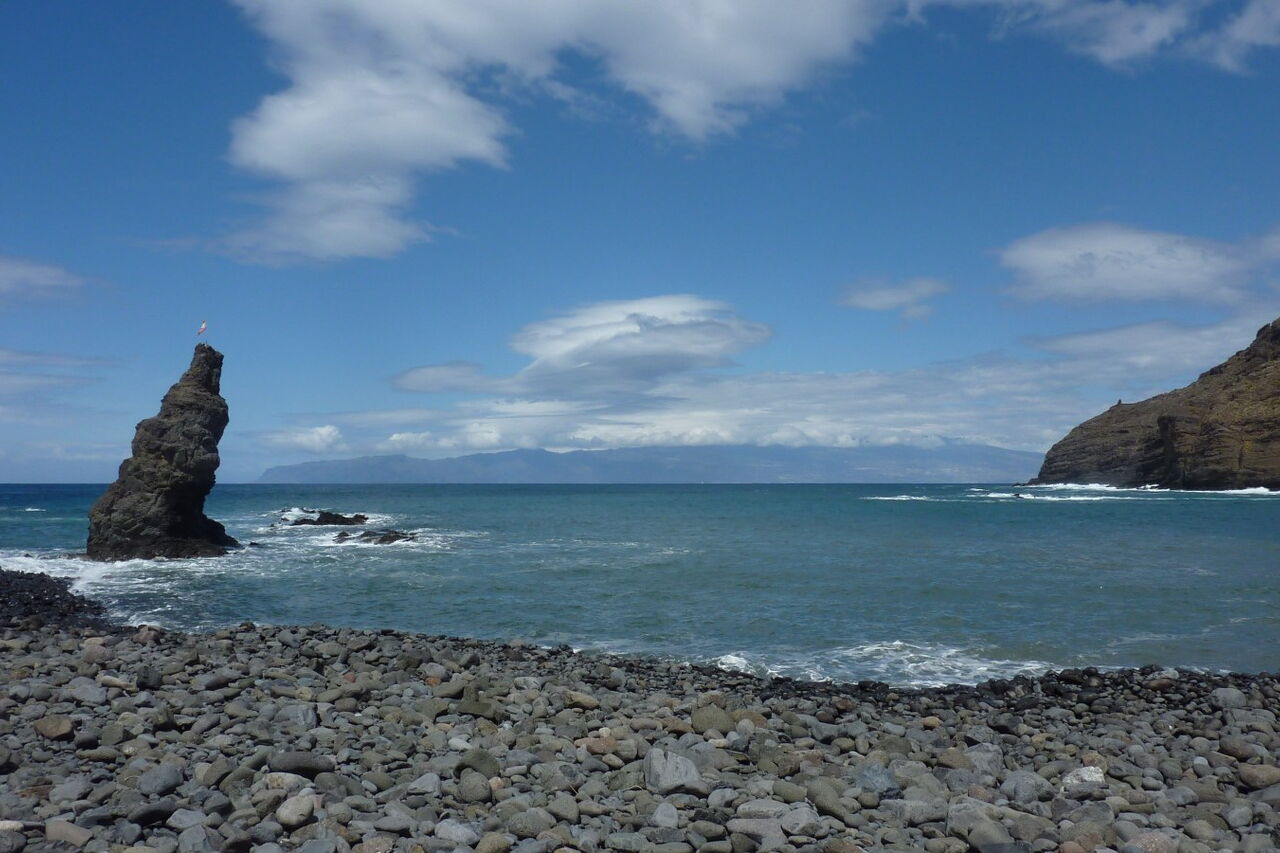 Dieser Strandabschnitt am Playa de La Caleta war eine erste natürliche Anlegestelle für die An- und Abreise von Menschen der Gemeinde Hermigua. Die Schiffe ankerten in der Nähe der Bucht, Fracht und Passagiere wurden mit kleinen Beibooten an den Strand gebracht. Vom (01) Start und Ziel am Playa Caleta (30 m) gehen wir auf der Asphaltstraße, bis wir nach 720 m auf einen kleinen Parkplatz treffen.