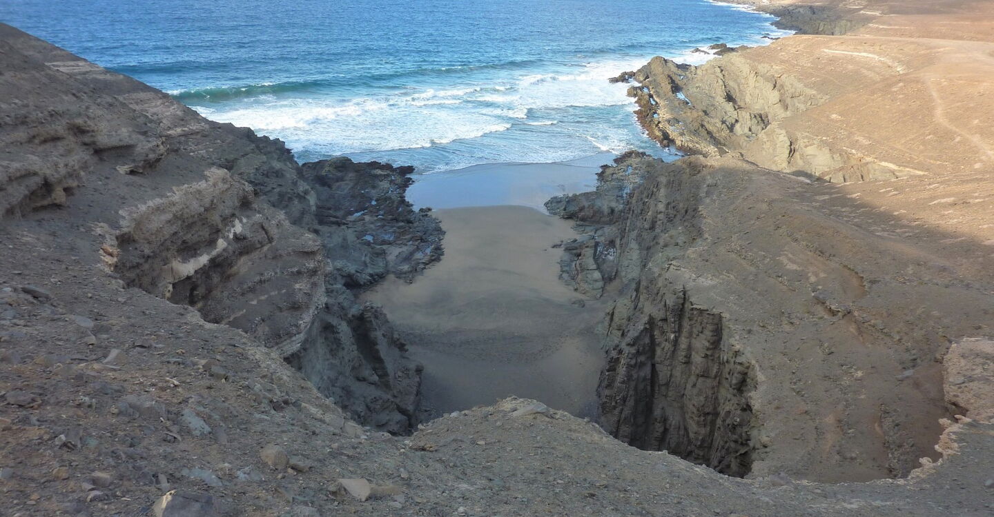 Der menschenleere, 40 m lange und 10 m breite feine Sandstrand liegt im Norden von Fuerteventura, in der Nähe der Ortschaft Llanos de la Concepción. ǀ Der Strand ist schwer erreichbar. Zugang: Auto und Wanderung ǀ Baden ist nicht möglich. ǀ Verschiedenes: romantischer, sauberer Strand mit sauberem Wasser, viel Schatten, mit dem Buggy erreichbar bis an den Rand der Klippe, FKK möglich, Hunde nicht erlaubt ǀ Toiletten, Duschen, Sonnenstühle und Sonnenschirme sind nicht vorhanden ǀ Aktivitäten: Abenteuer ǀ Tipp: Planen Sie mithilfe der Webseite Gezeitenfisch einen Tag mit Niedrigwasser ein, um den Strandabschnitt nutzen zu können. |