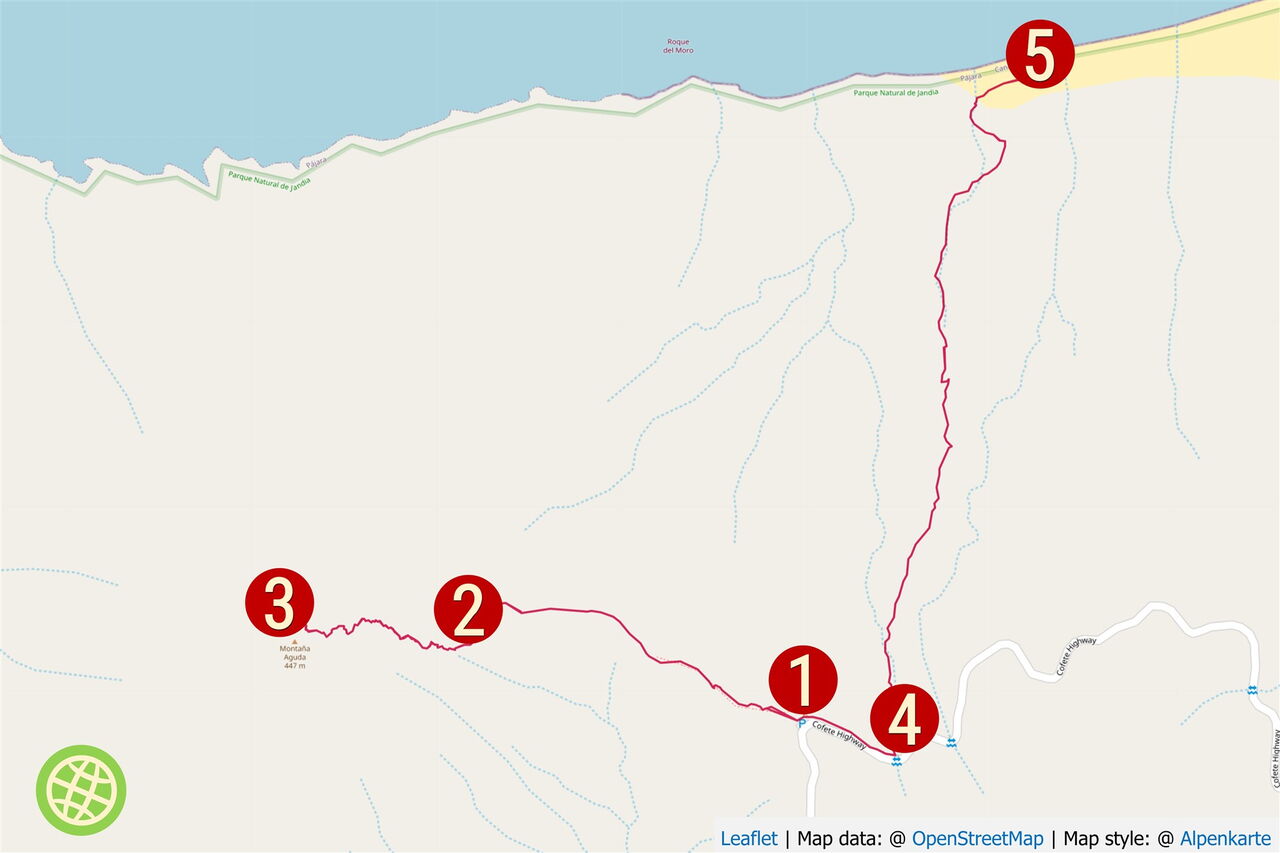 Uns erwartet eine komplett weglose Wanderung. Der Aufstieg zum Pico las Pilas ist steil und rutschig. Art des Weges: 80 % Pfad und 20 % Schotterweg. Weitere Ausrüstungsempfehlungen: Das Laufen mit Wanderstöcken erleichtert den Auf- und Abstieg auf rutschigem Untergrund. Es gibt keine Einkehr, außer man fährt weiter nach Cofete, wo es eine Bar gibt. Beste Wanderzeit: ganzjährig. Hinweis: Bei vielen Autovermietern ist das Befahren von Schotterpisten in den Vertragsbedingungen ausgeschlossen. Diese wichtige Frage sollte man vor Antritt der Fahrt klären.