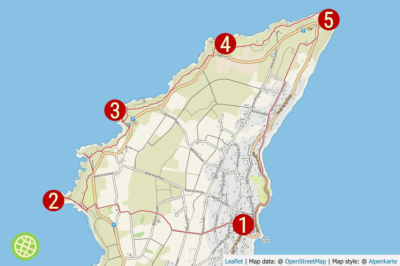Mittelschwere Wanderung aufgrund der Länge und des erhöhten Navigationsaufwands. Art des Weges: 30 % Straße, 30 % Piste und 40 % Pfad. Zusatzausrüstung: Keine. Einkehr: Keine empfehlenswerten auf der Wanderung. Tipp: Der Chefkoch der Hostellerie de la Mer serviert dem Zeitgeist entsprechende fangfrische Fischgerichte der Region. | 11 Quai Le Fret, 29160 Crozon | http://www.hostelleriedelamer.com | contact@hostelleriedelamer.com | +332982761 | Geokoordinaten 48.285558 -4.507815 | Beste Wanderzeit: Ganzjährig. Sehenswert Region: Die 9 km entfernte Chapelle Notre-Dame de Rocamadour, Geokoordinaten 48.280538 -4.592854.